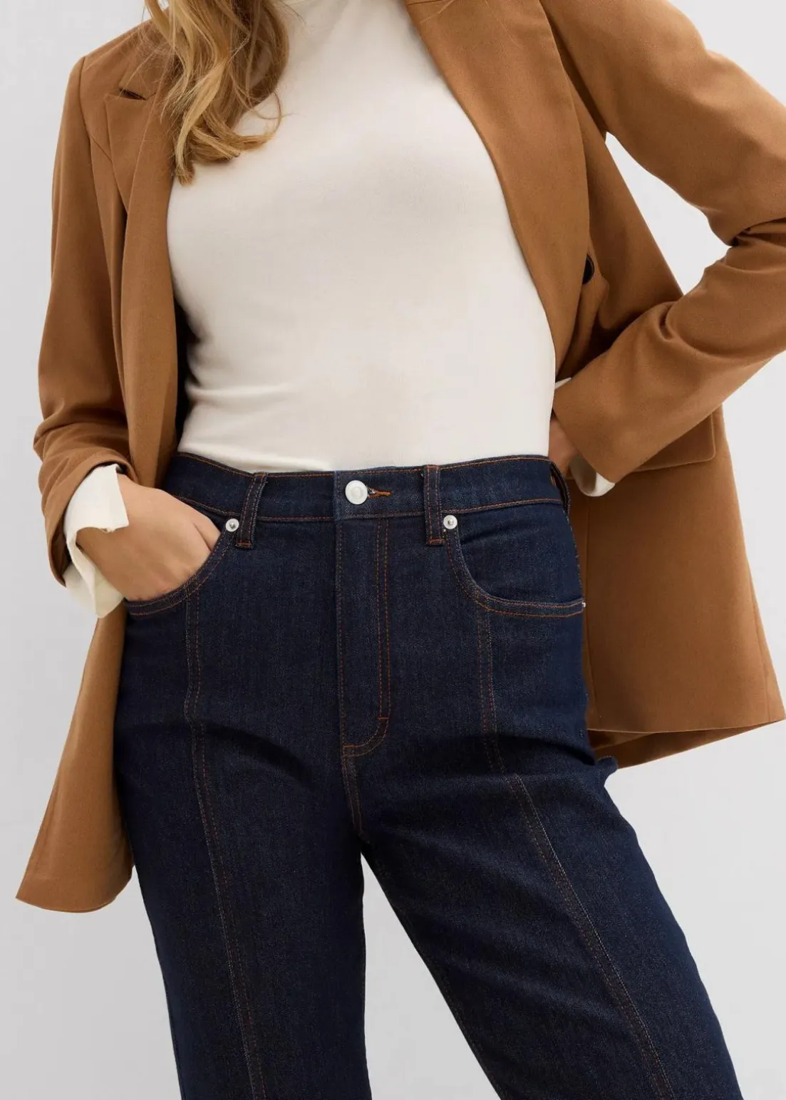 - Saumweite:enger zulaufendes Bein (Tapered Leg)