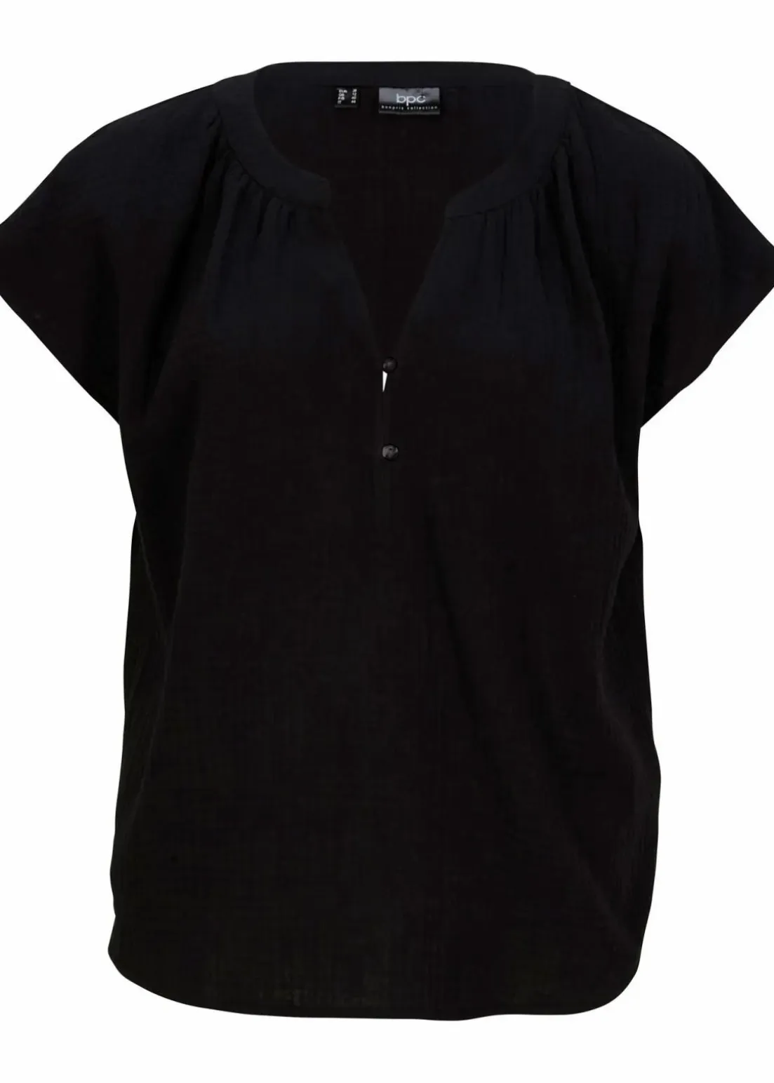 Modische Musselin-Bluse mit V-Ausschnitt und überschnittenen Schultern