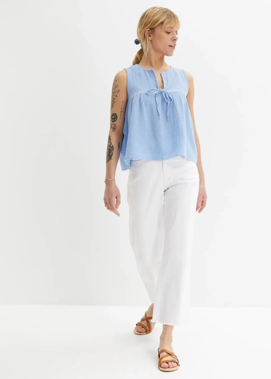 Modischer Begleiter für den Sommer! Trendiges Blusentop in angesagter Musselin-Qualität