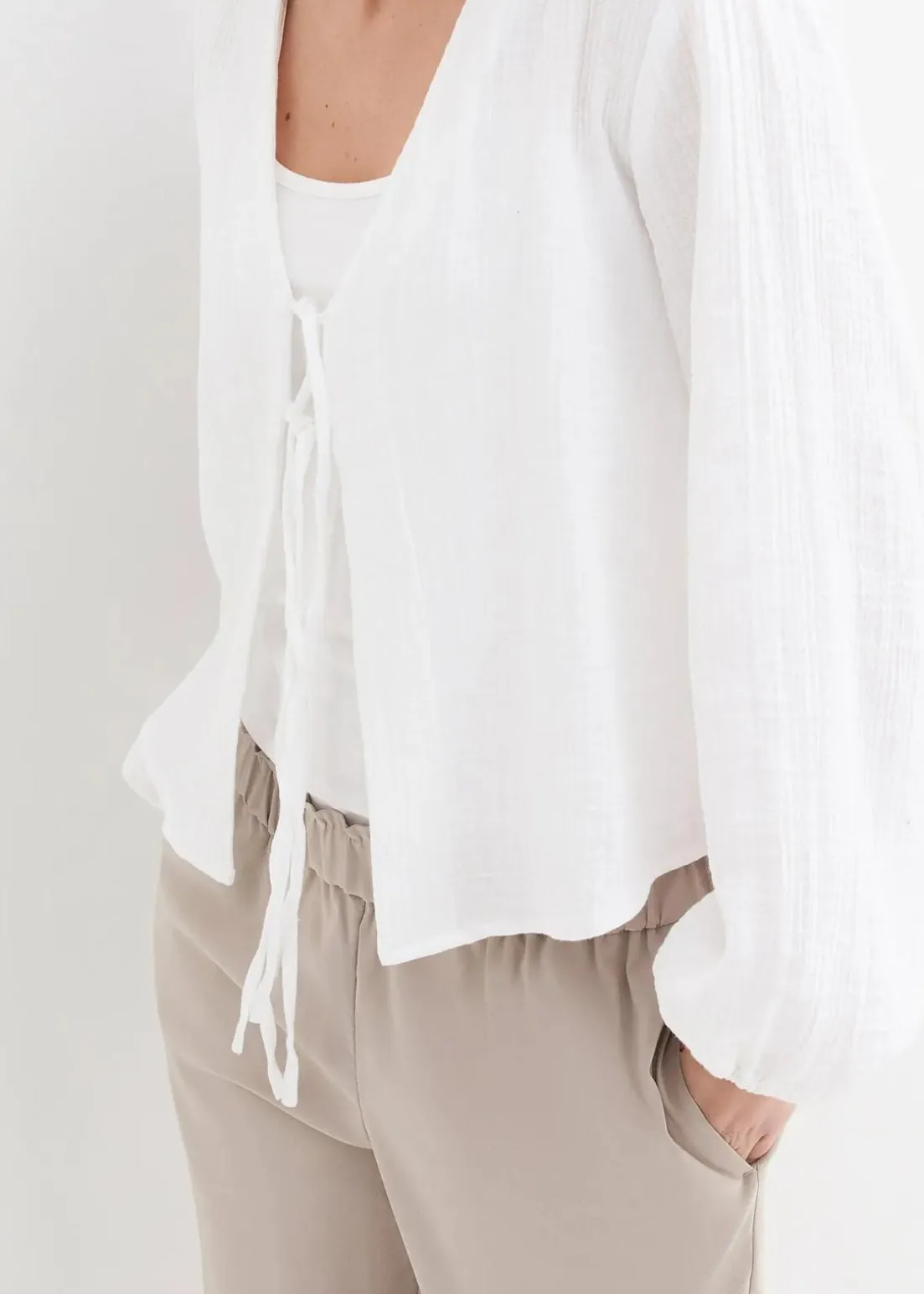 Moderner Bolero aus Musselin mit Ballonärmeln und Bindeband