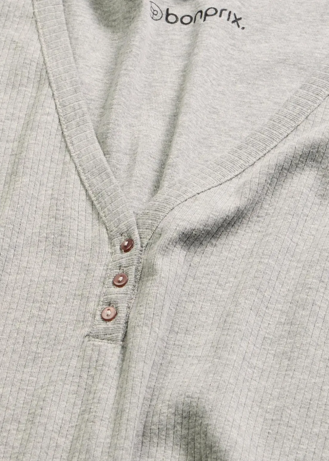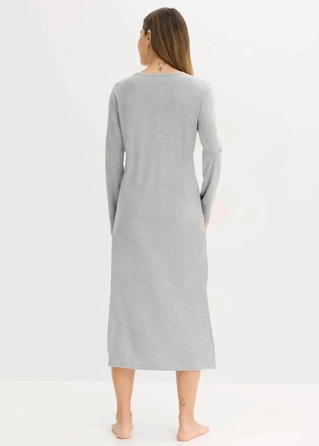 Langes langärmeliges Nachthemd mit V-Ausschnitt und hohen Seitenschlitzen