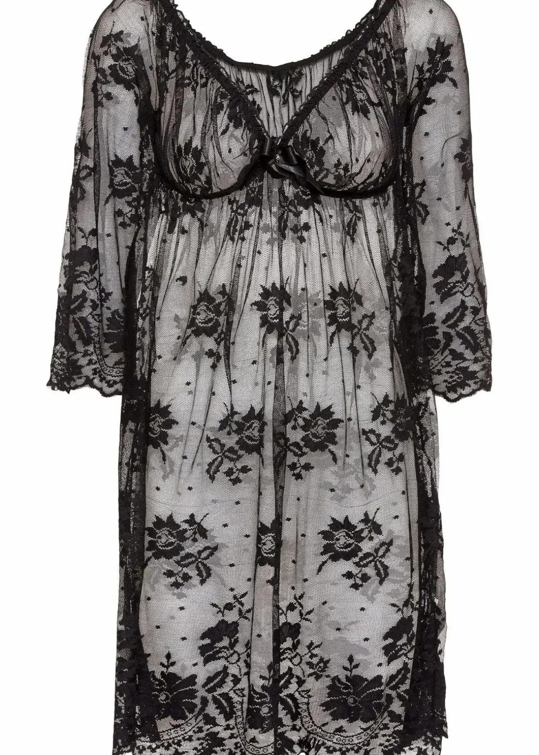 Pure Eleganz! Das Negligé umspielt luftig Ihre weiblichen Kurven und sorgt mit zarter Transparenz für tiefe Einblicke. Der tiefe V-Ausschnitt umrahmt fein Ihr Dekolleté und eine Zier-Schleife in der Mitte rundet das Outfit perfekt ab. Ihr Partner wird von diesen romantischen Look begeistert sein.Das Negligé ist auch in großen Größen erhältlich.