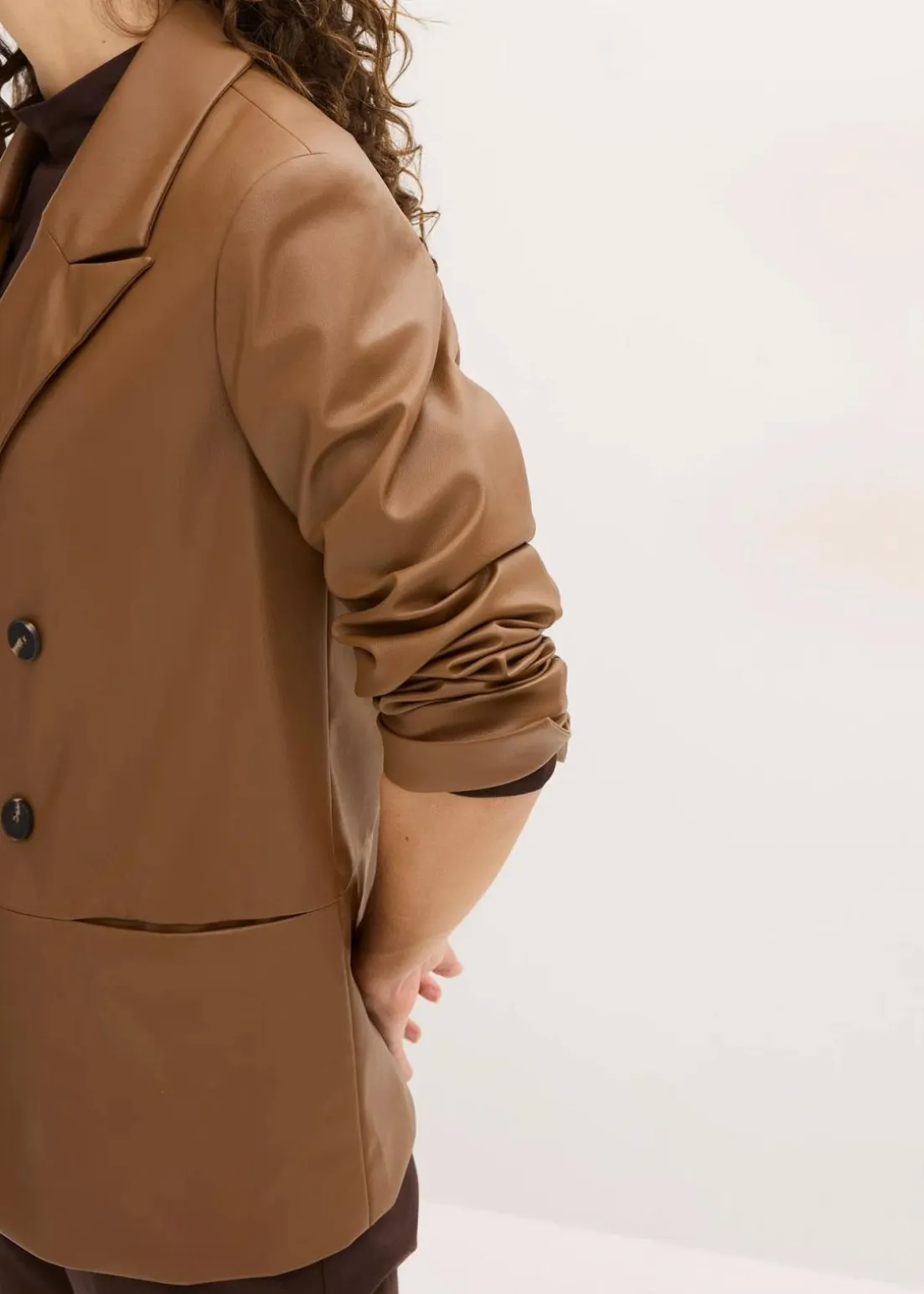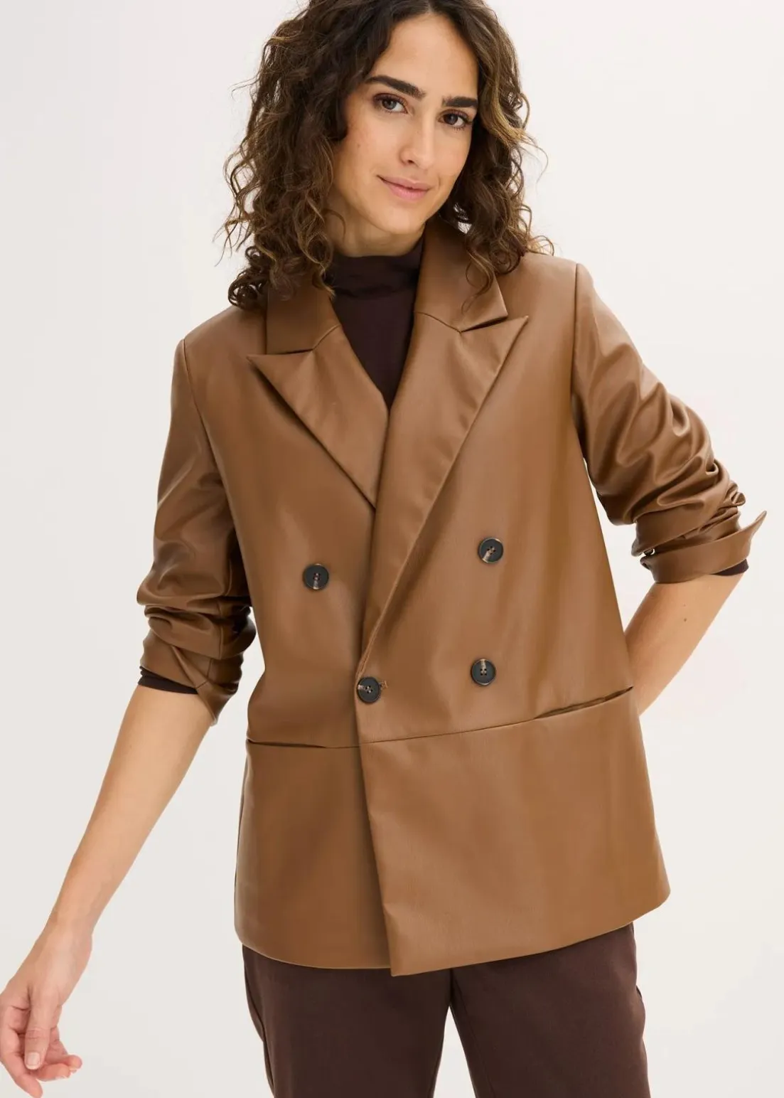 Doppelreihiger Blazer mit Taschen aus softem Lederimitat