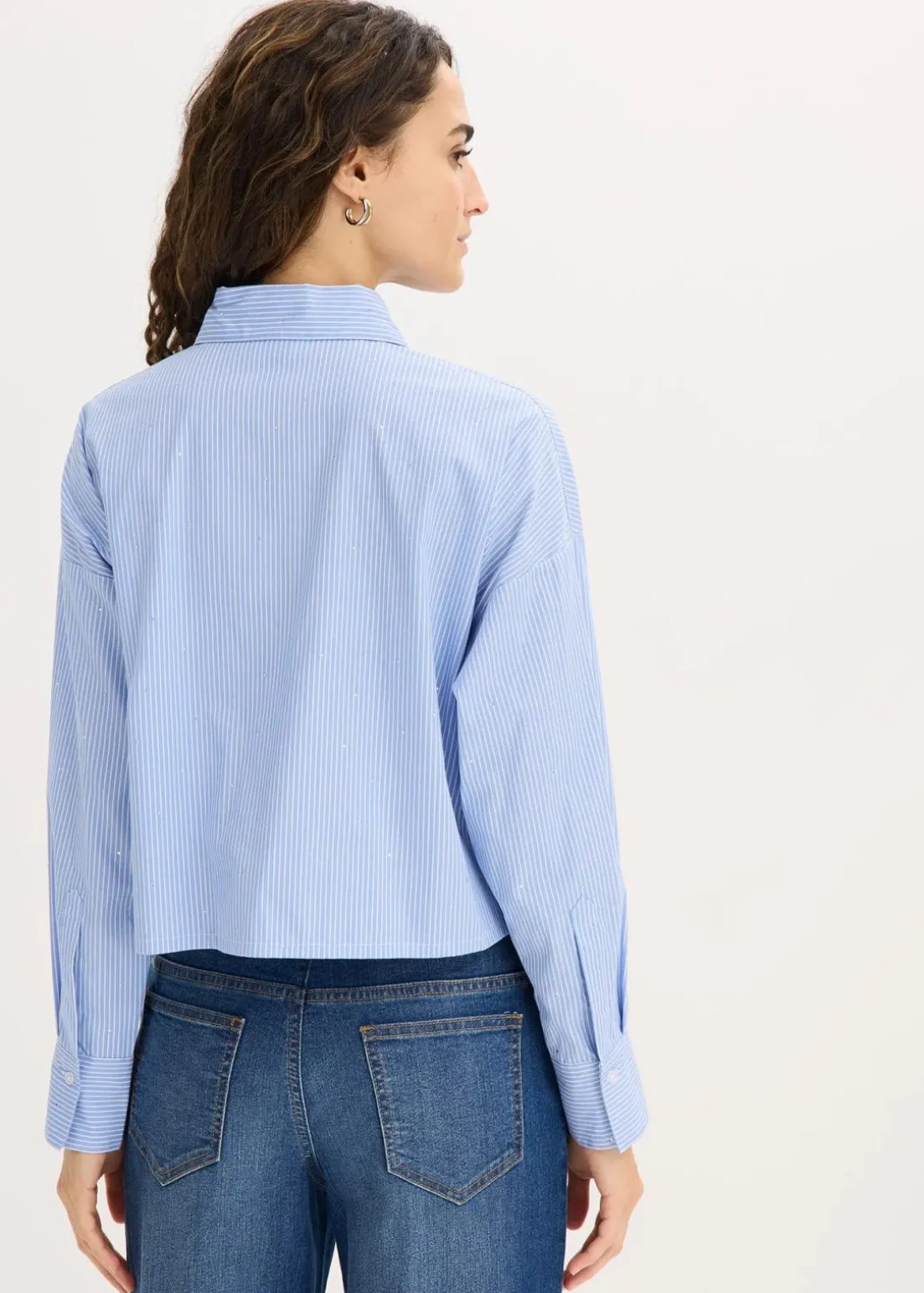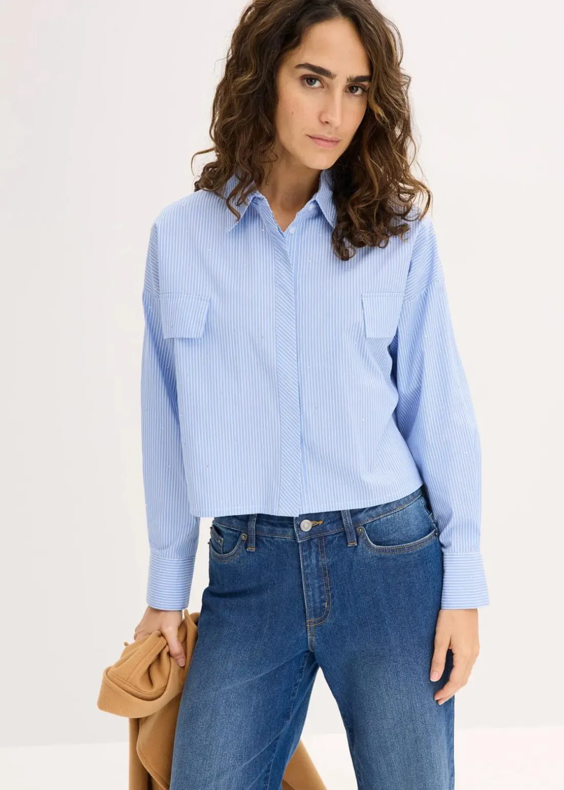 Kurze Bluse in Streifendessin mit aufgesetzten Patten