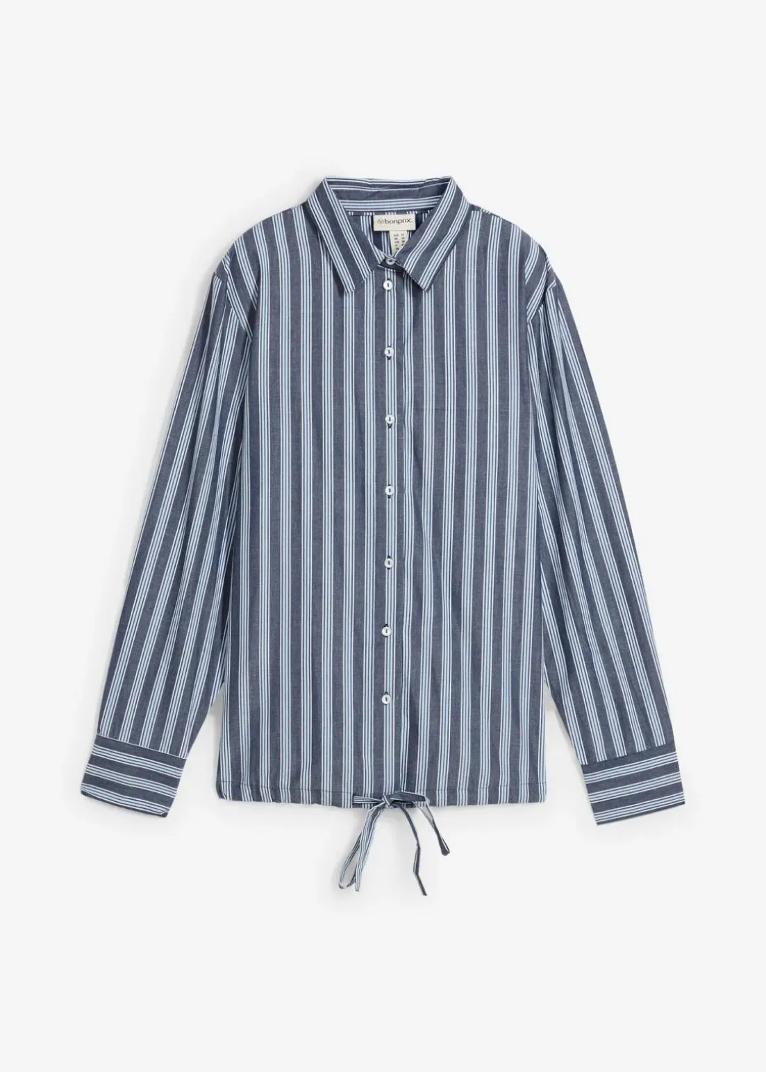 Gestreifte Bluse mit vorderer Knopfleiste und Tunnelzug am Saum.
