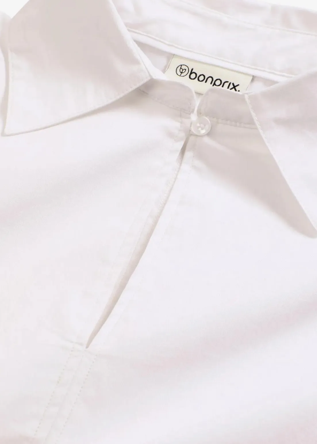 Oversize-Bluse mit Kentkragen und Schlüssellochöffnung mit Knopf vorne