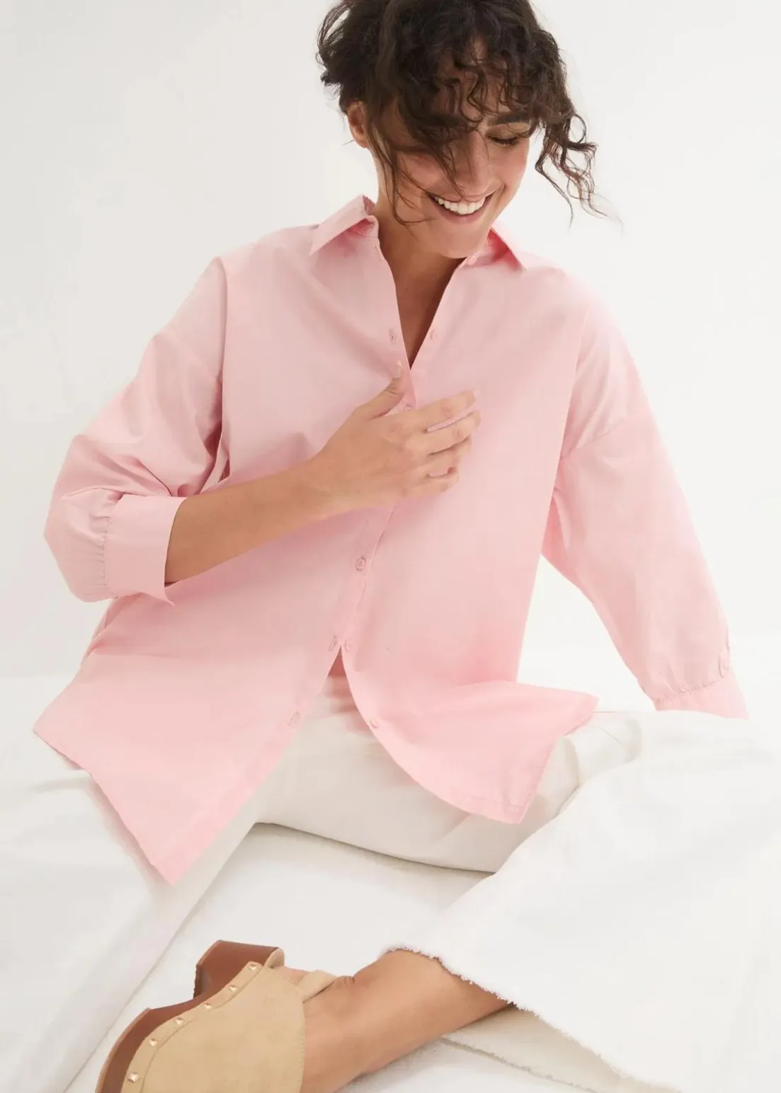 Modische Oversized Bluse mit 3/4 Arm und Knopfleiste