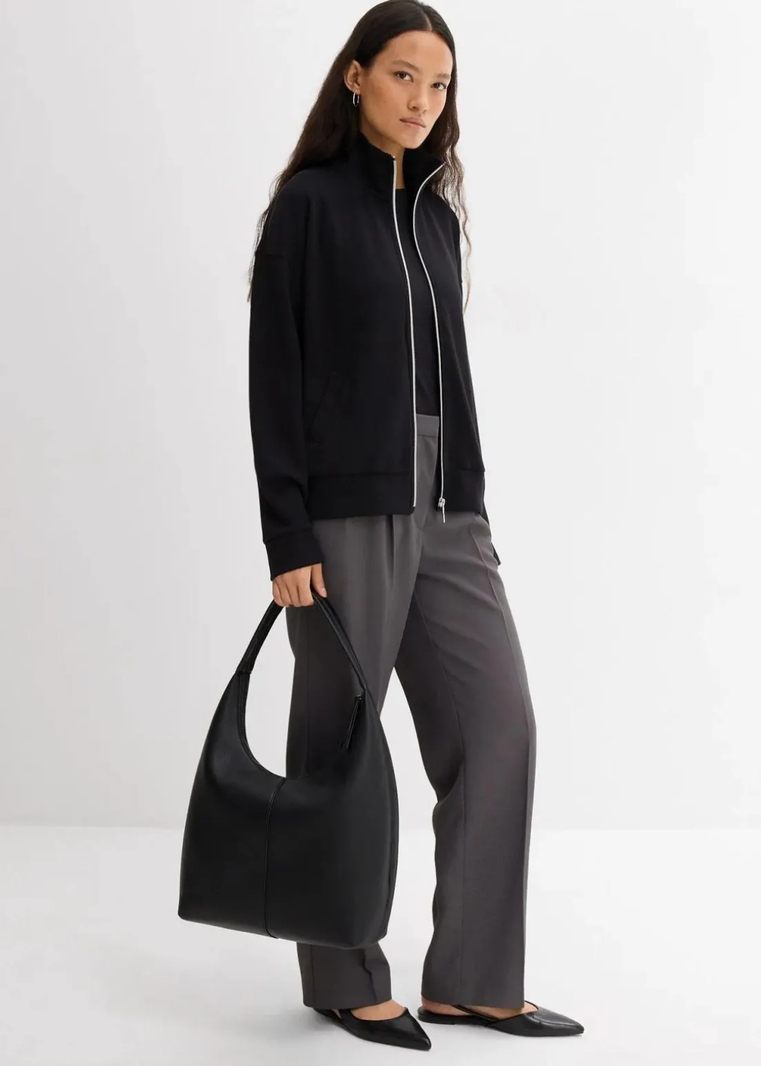 Oversize Jacke aus Scuba mit Stehkragen, Frontreißverschluss, überschnittenen Schultern und Leistentaschen vorne