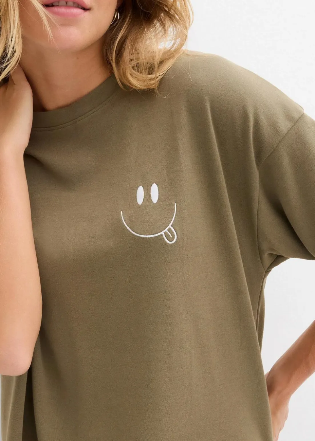Lässiges Longshirt mit komfortgebenden Seitenschlitzen und Stickerei
