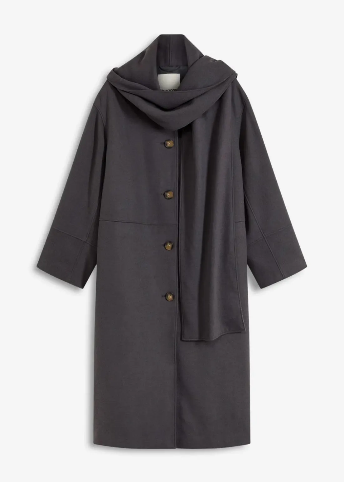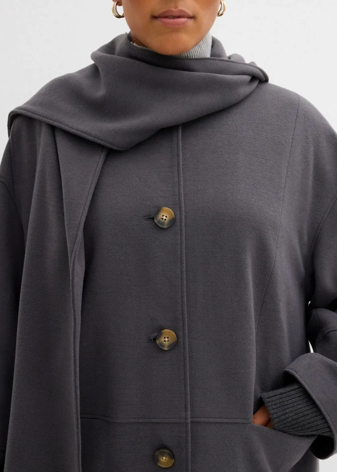 Langer Oversize-Mantel mit Schaldetail sowie langen weiten Ärmeln. Vorne mit zwei dezenten Nahttaschen, welche aus Qualitätsgründen bei Lieferung geschlossen sind. Diese können bei Bedarf aufgetrennt werden.