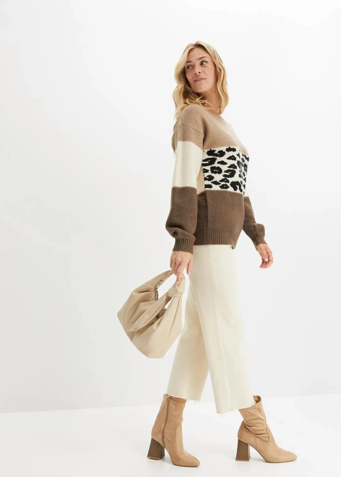 Moderner Pullover von BODYFLIRT. Der Pullover in Streifen-Optik mit Glitzer ist oversize geschnitten und mit einem weiten Ausschnitt gearbeitet. Länge in Gr. 36/38 ca. 64 cm.