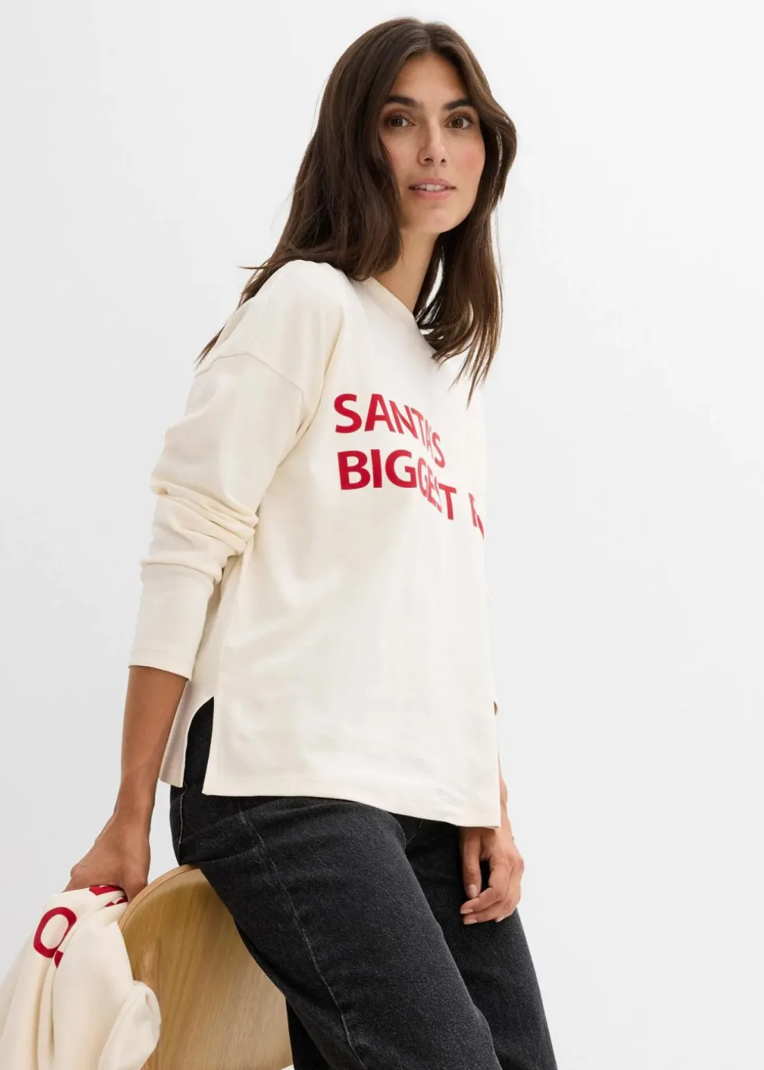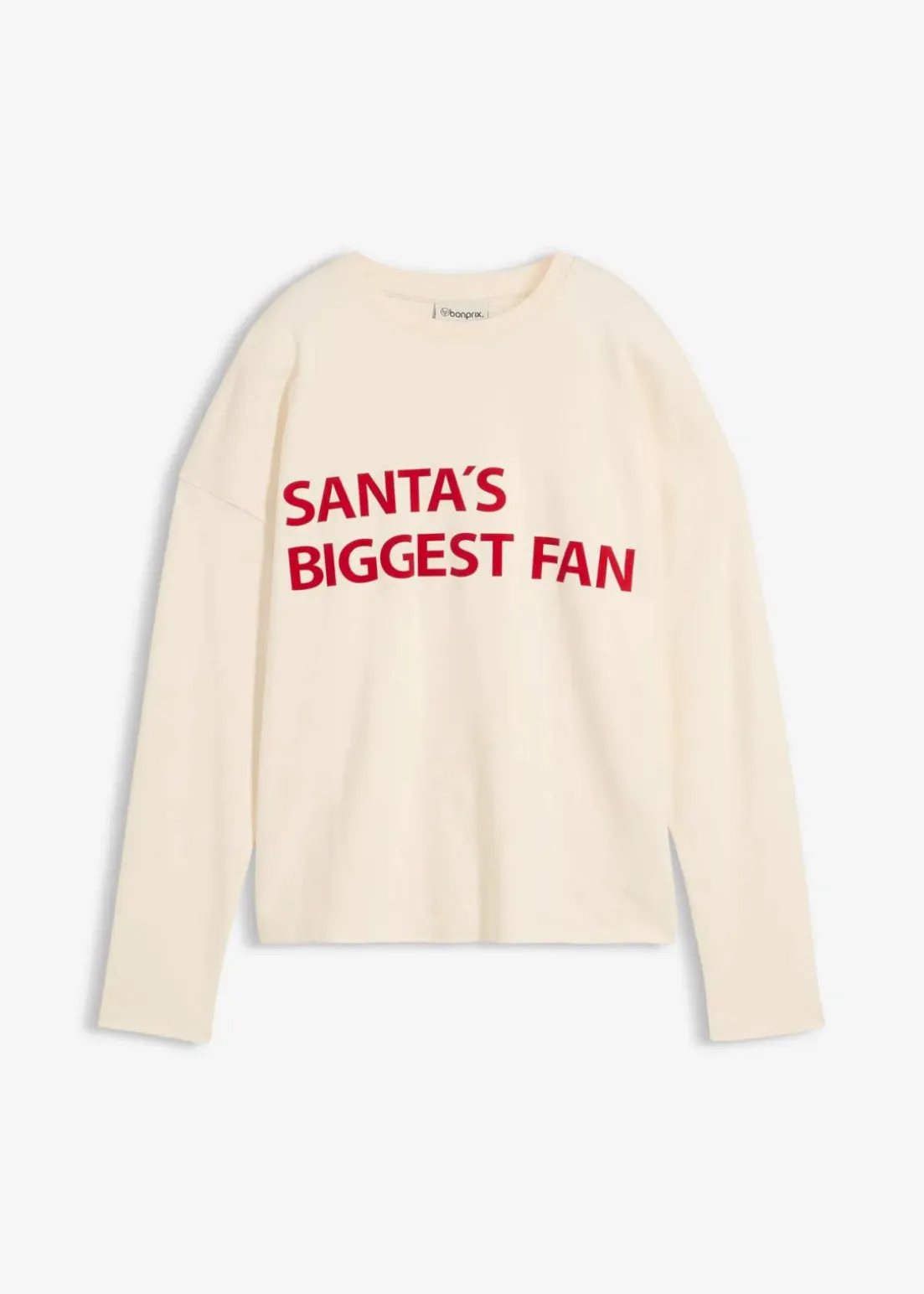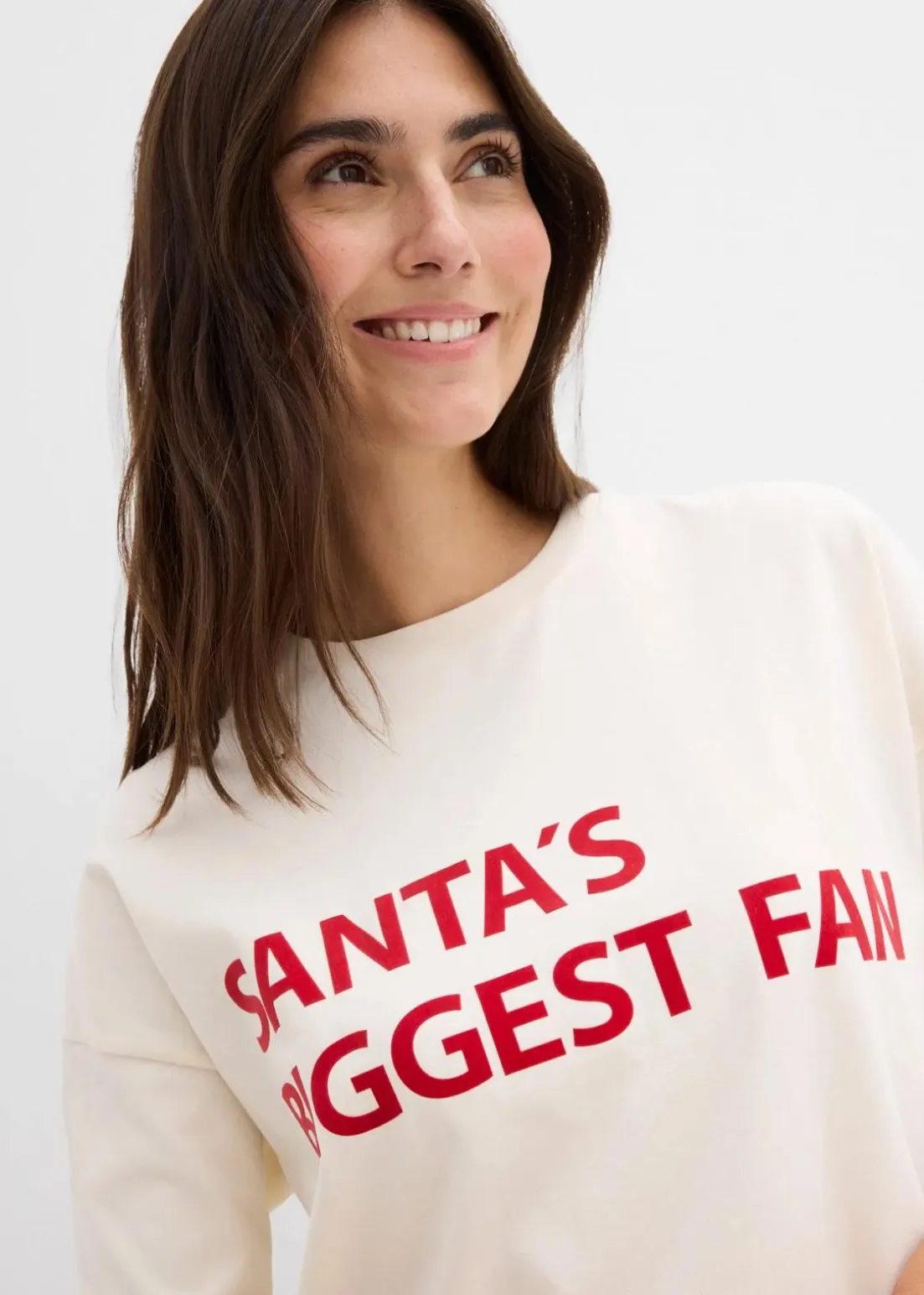 Weit geschnittenes Baumwoll-Shirt mit weihnachtlichem Wording