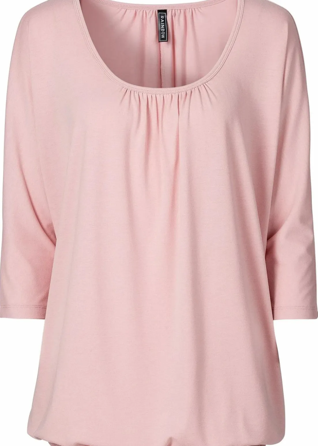 Das vielseitig zu tragende Shirt begeistert mit stylishen Fledermausärmeln und der Gummizug am Saum lässt das figurumspielende Oversize-Shirt locker fallen.