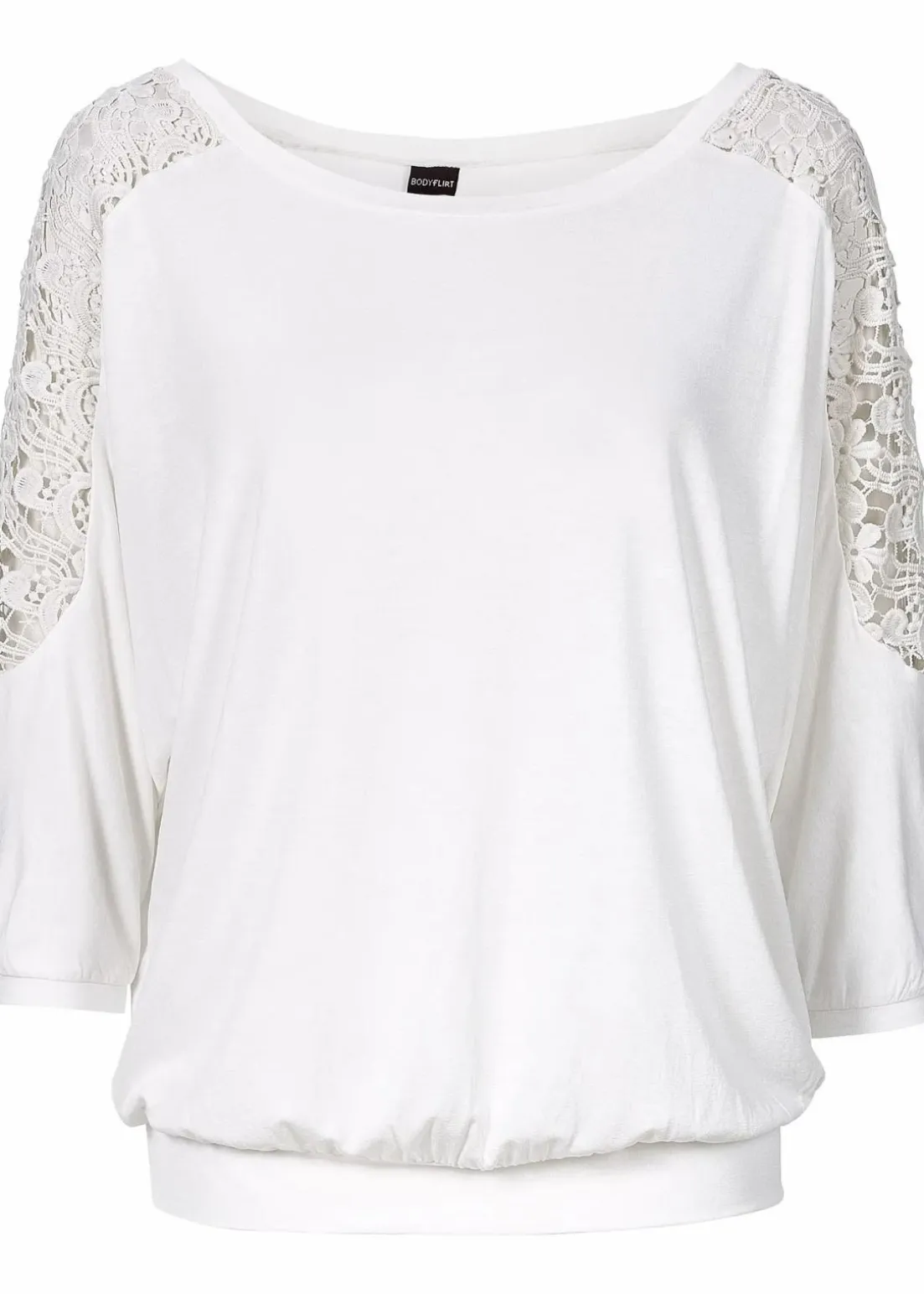 Attraktives Oversize- Shirt mit dekorativer Spitze an den Ärmeln.