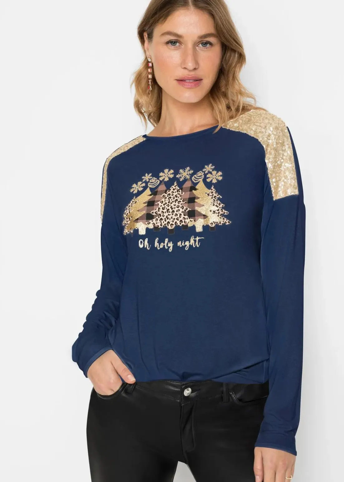 Mit seinem raffinierten Schnitt und schönem Weihnachtsmotiv zieht dieses attraktive Shirt garantiert die Blicke auf sich. Länge in Größe 36/38 ca. 64 cm.