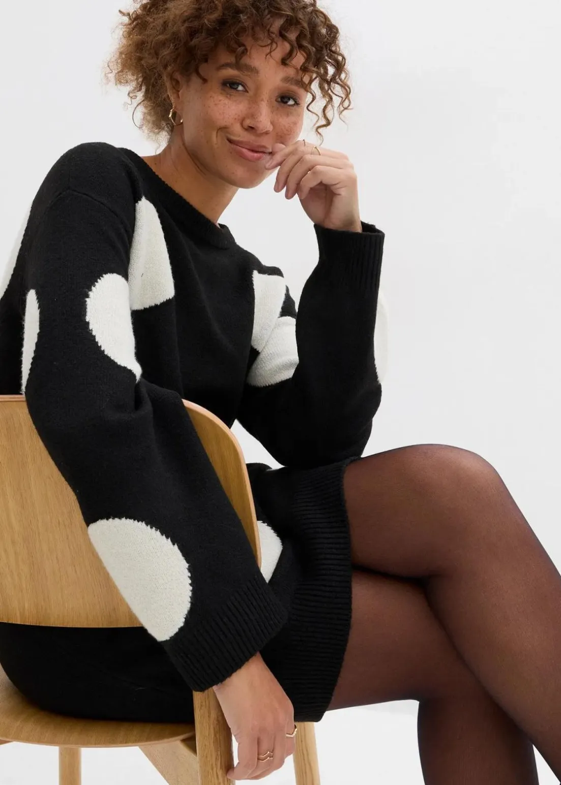 Modisches Oversize-Strickkleid mit Punkten