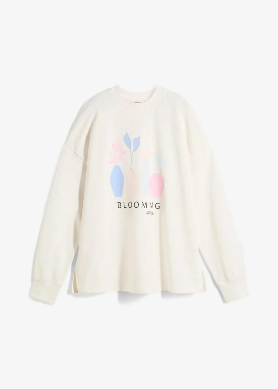 Langarm-Sweatshirt mit Blumen-Druck und Seitenschlitzen