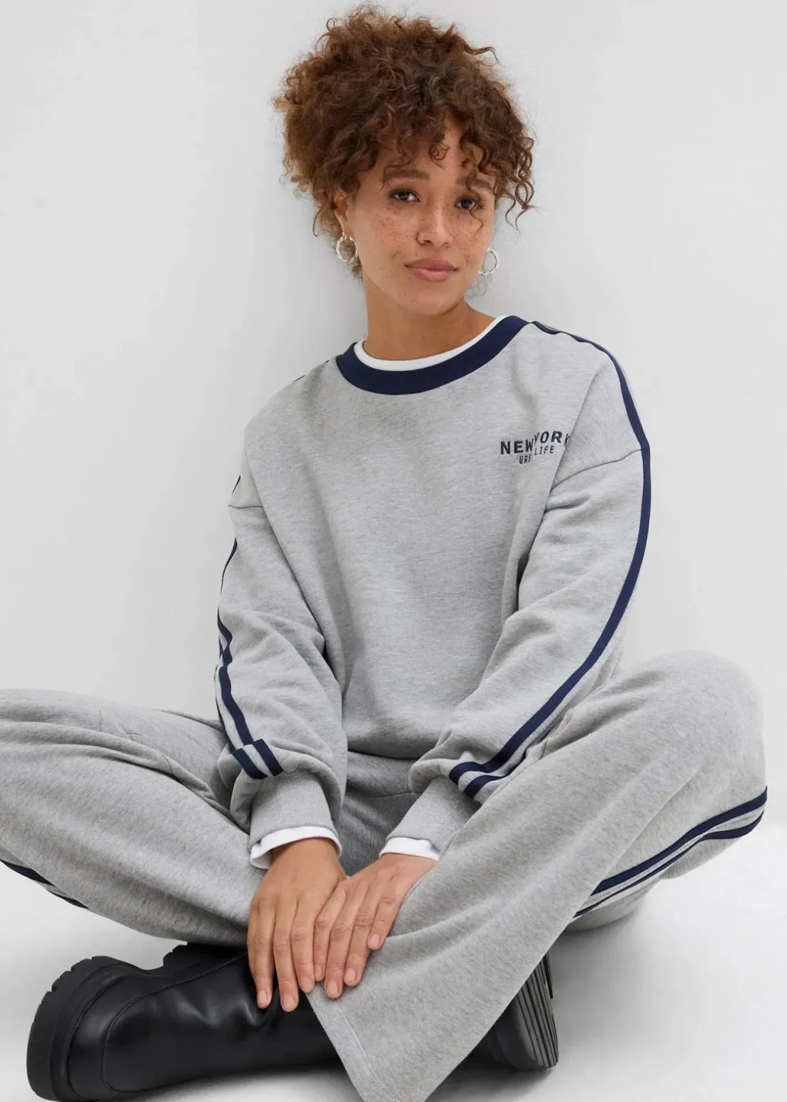Modisches Oversize-Sweatshirt aus weichem Baumwoll-Mix mit Kontraststreifen