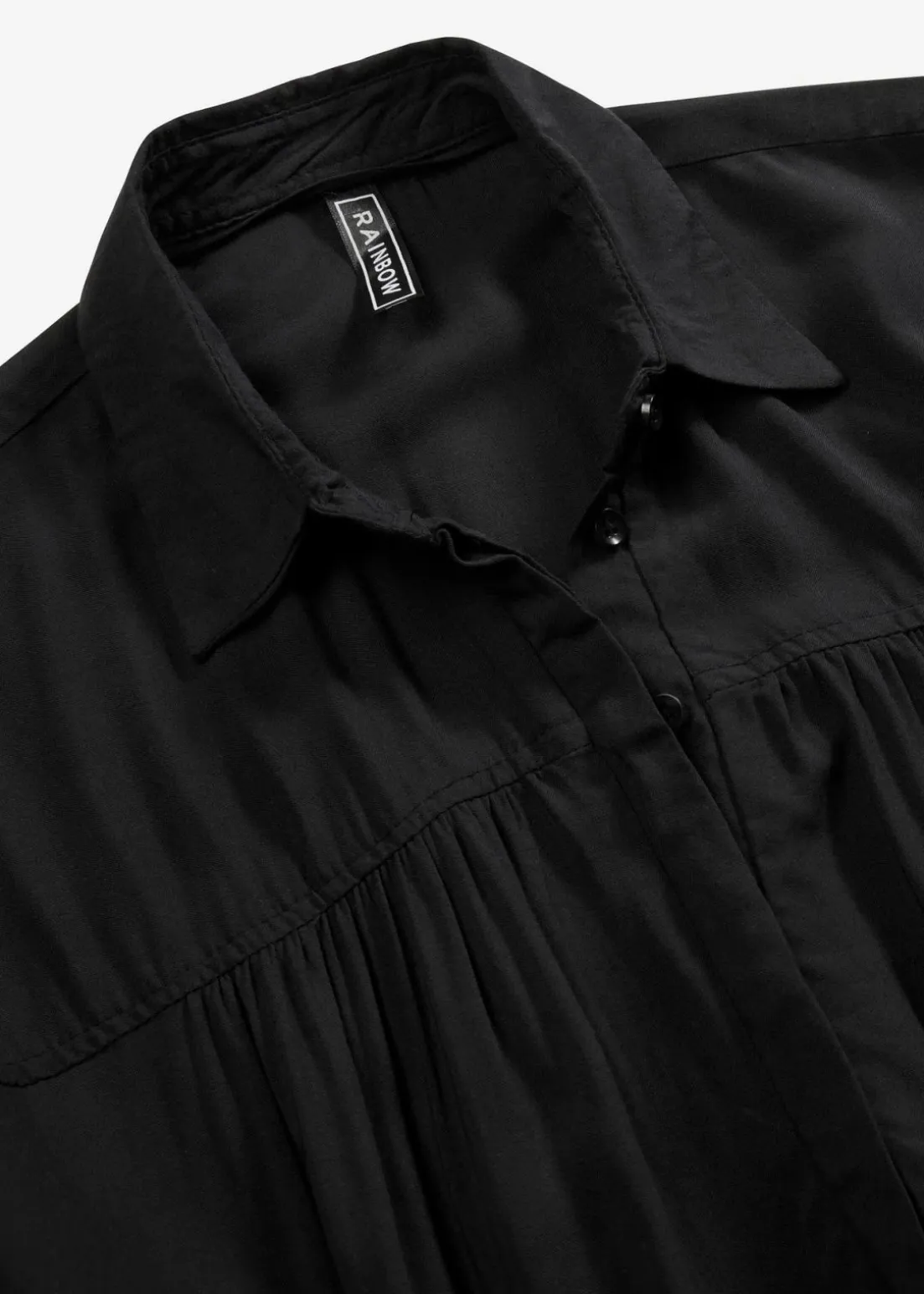 Diese Kurzarm-Bluse überzeugt mit ihrem geraden Schnitt mit überschnittenen Schultern. An den Hemdkragen schließt eine verdeckte Knopfleiste an. Auf Brusthöhe fällt eine geraffte Teilungsnaht auf, die für Weite und eine verspielte Optik sorgt.
