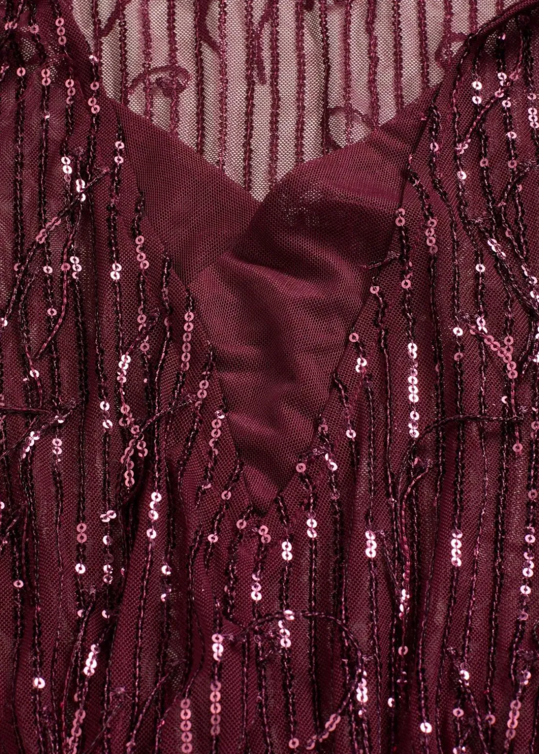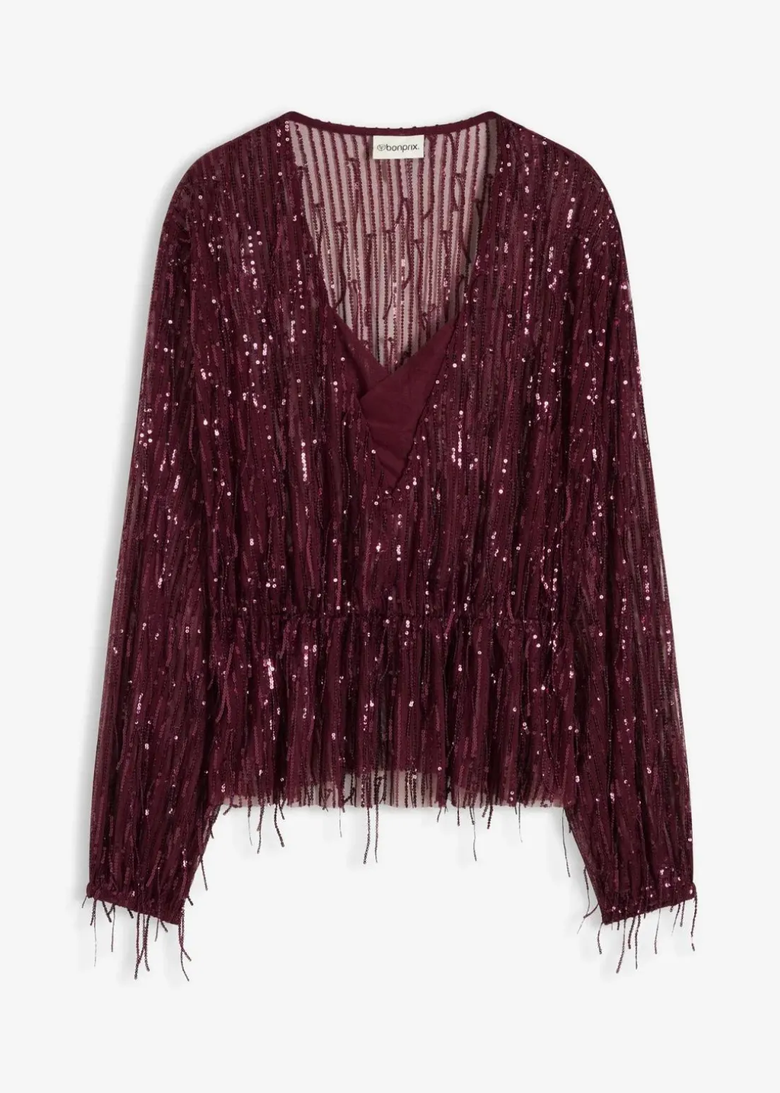 Pailletten-Bluse aus leicht elastischem Material mit Pailletten-Fransen und tiefem Ausschnitt vorne. Ungefüttert.