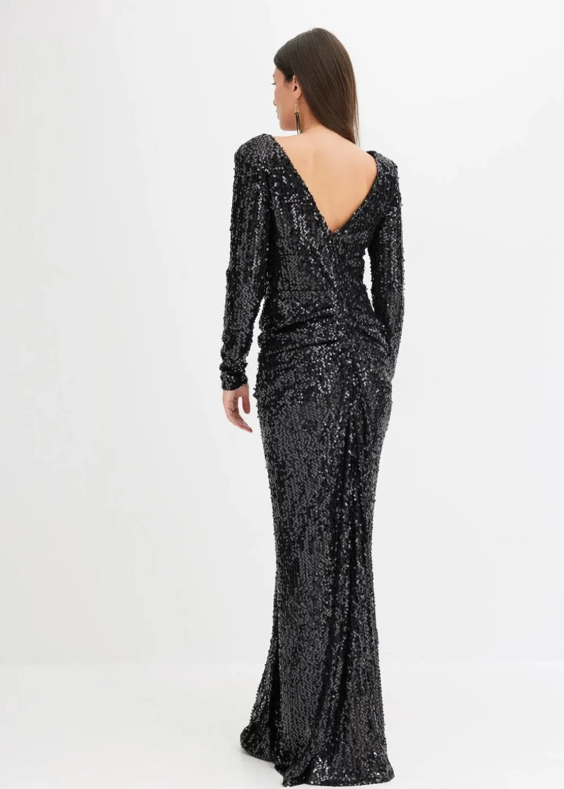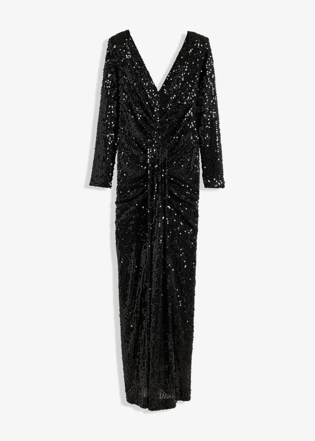 Ein wahrer Eye-Catcher! Paillettenkleid in Maxi-Länge mit Raffungen und Drapierung in der Taille.