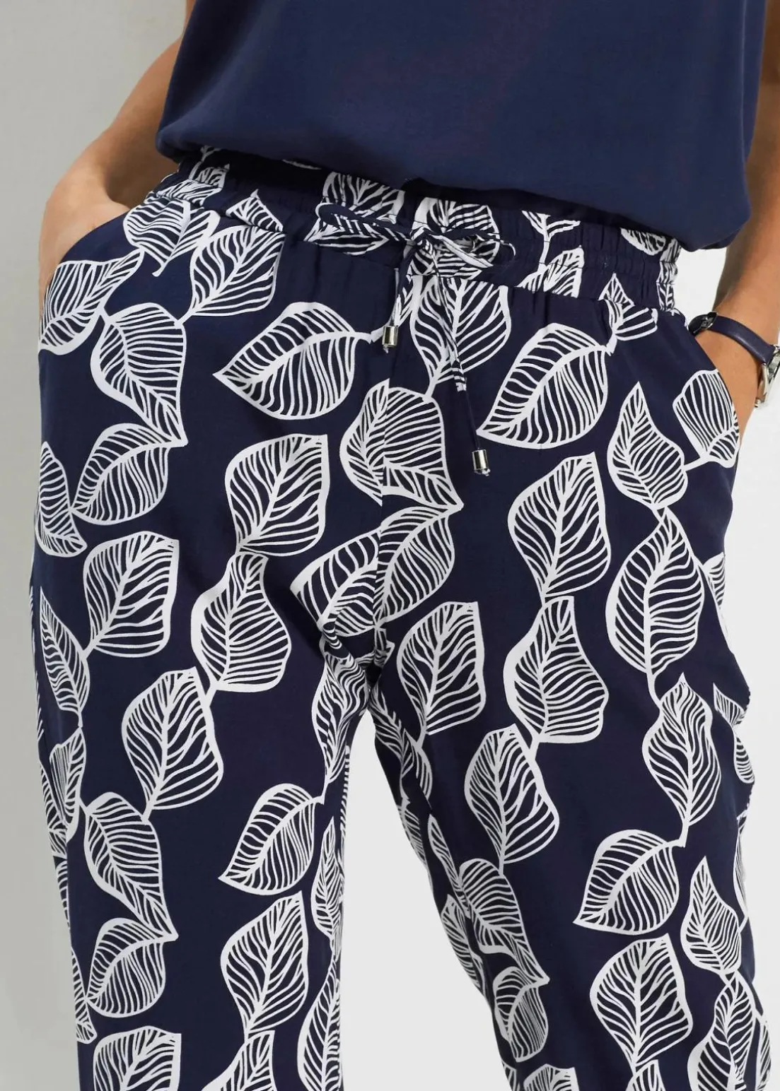 Leichte Qualität, elastischer Gummibund mit Schnürungsoption und figurumspielendem Schnitt, seitliche Eingrifftaschen, Innenbeinlänge ca. 80,5 cm (Gr.42), maschinenwaschbar,