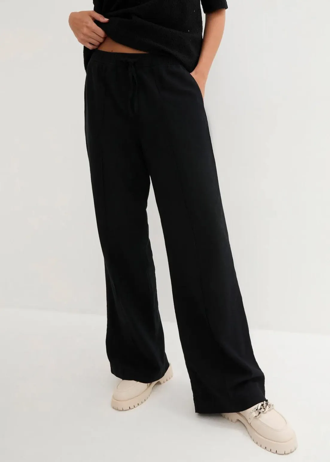 Knöchellange Leinenhose mit weitem Bein und lässiger Passform