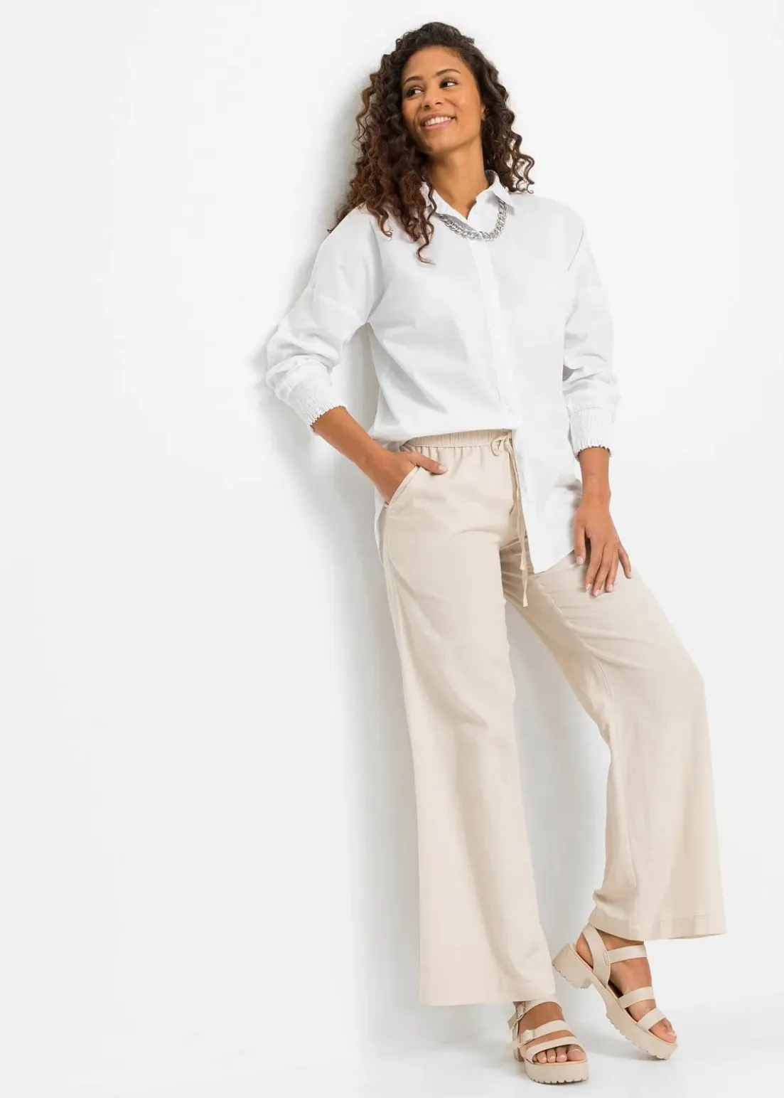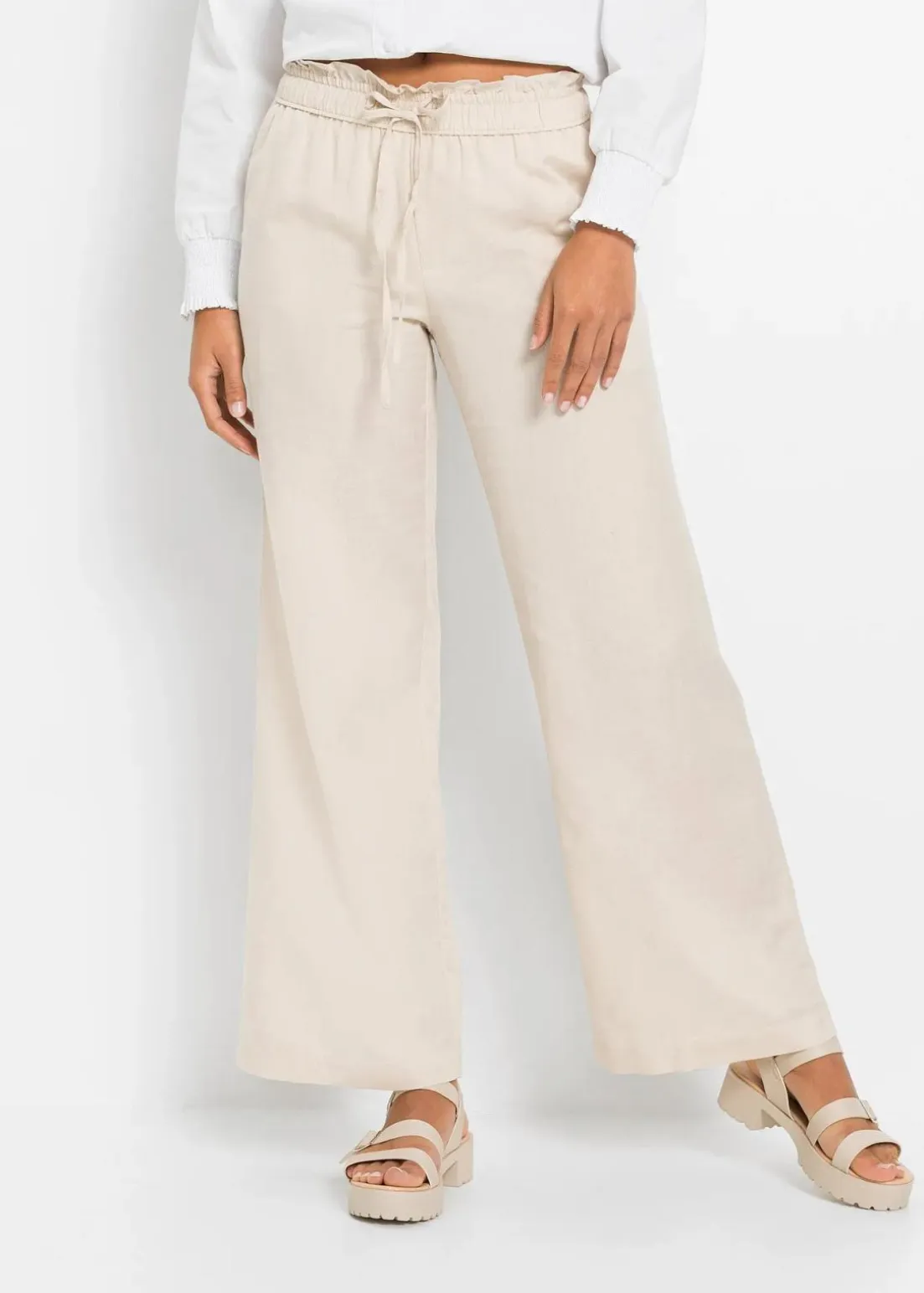 Modische, weit geschnittene Leinenhose mit Gummibund