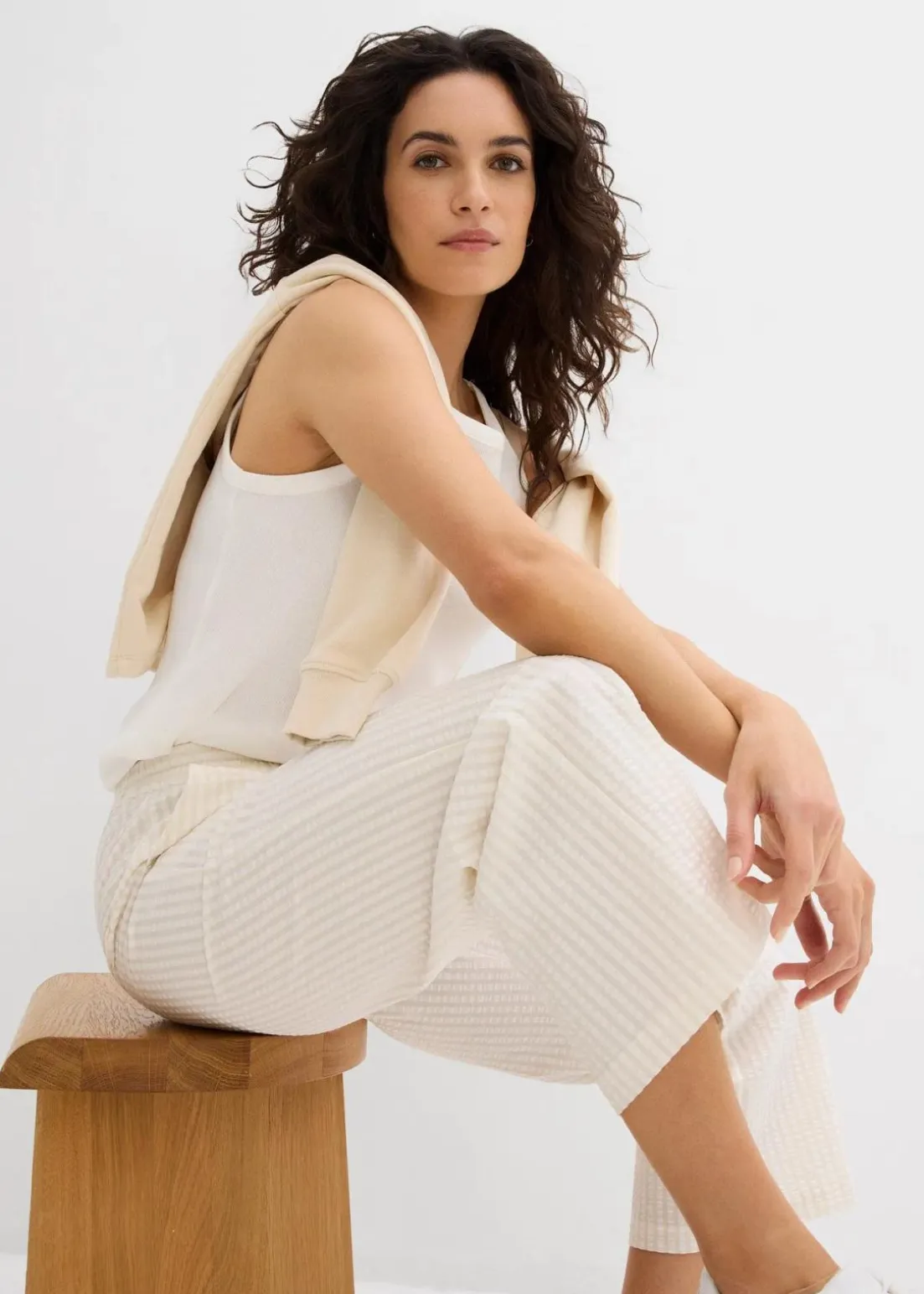Weite Hose aus Baumwoll-Seersucker mit Bequembund