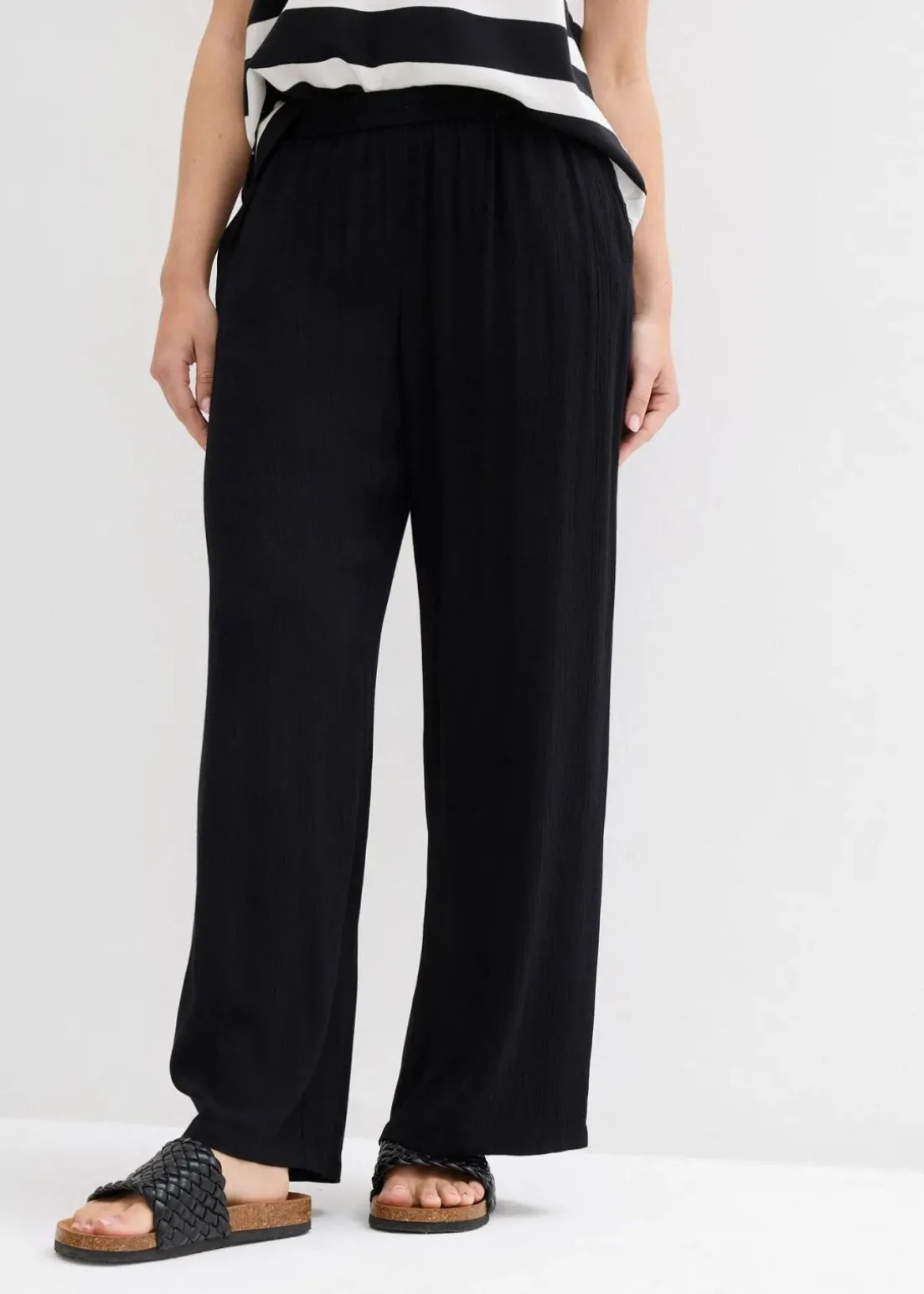 Palazzo-Hose aus strukturiertem Crinkle mit weitem Bein