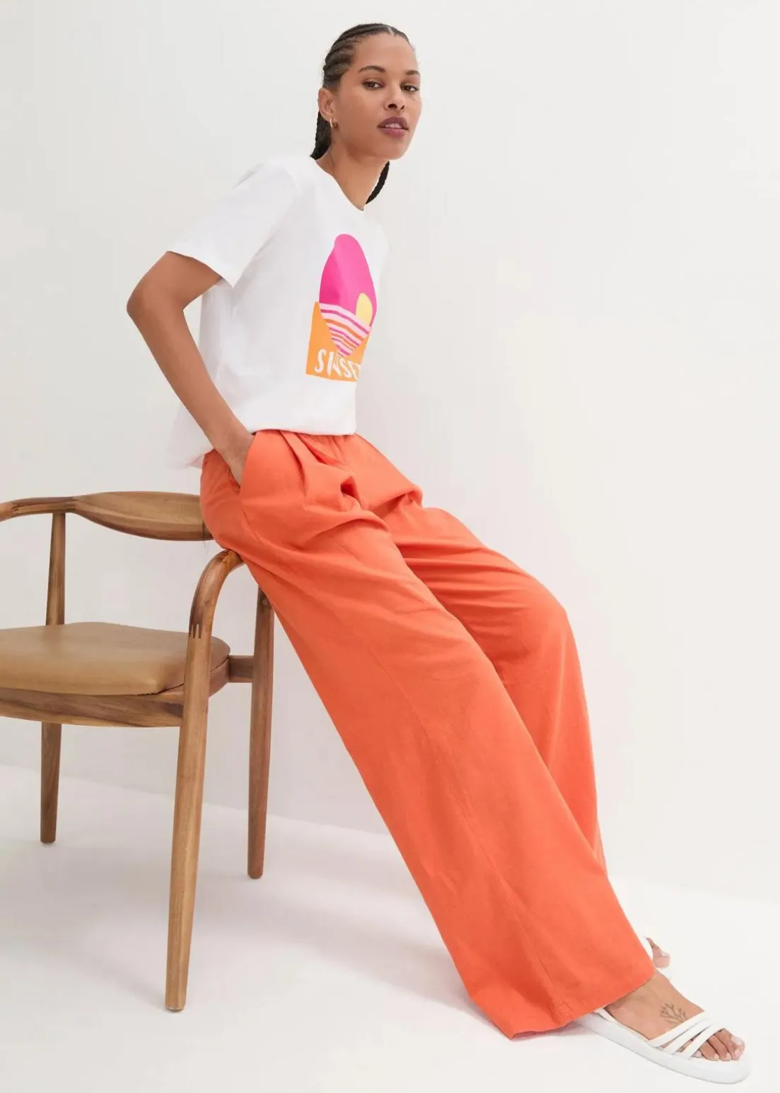 Lässige Palazzo-Hose mit Leinen, mit sehr weit geschnitten Beinen.