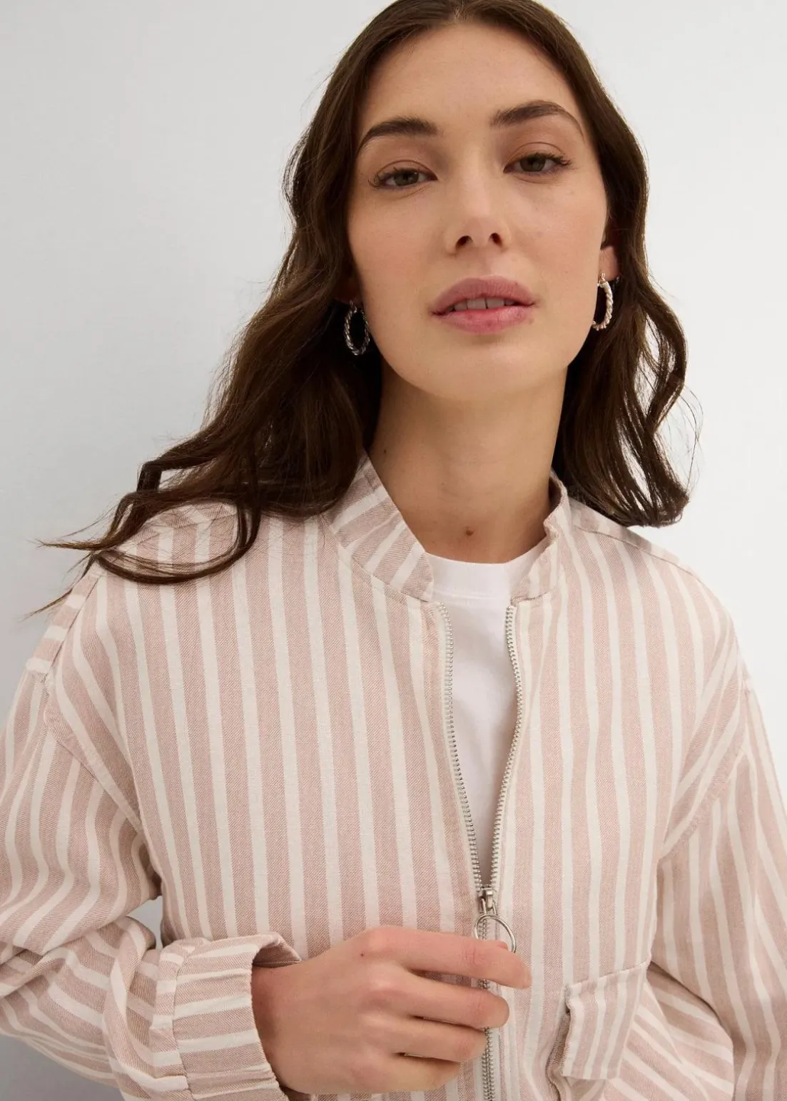 Lässige Pilotenjacke in Leinenoptik mit aufgesetzten Taschen
