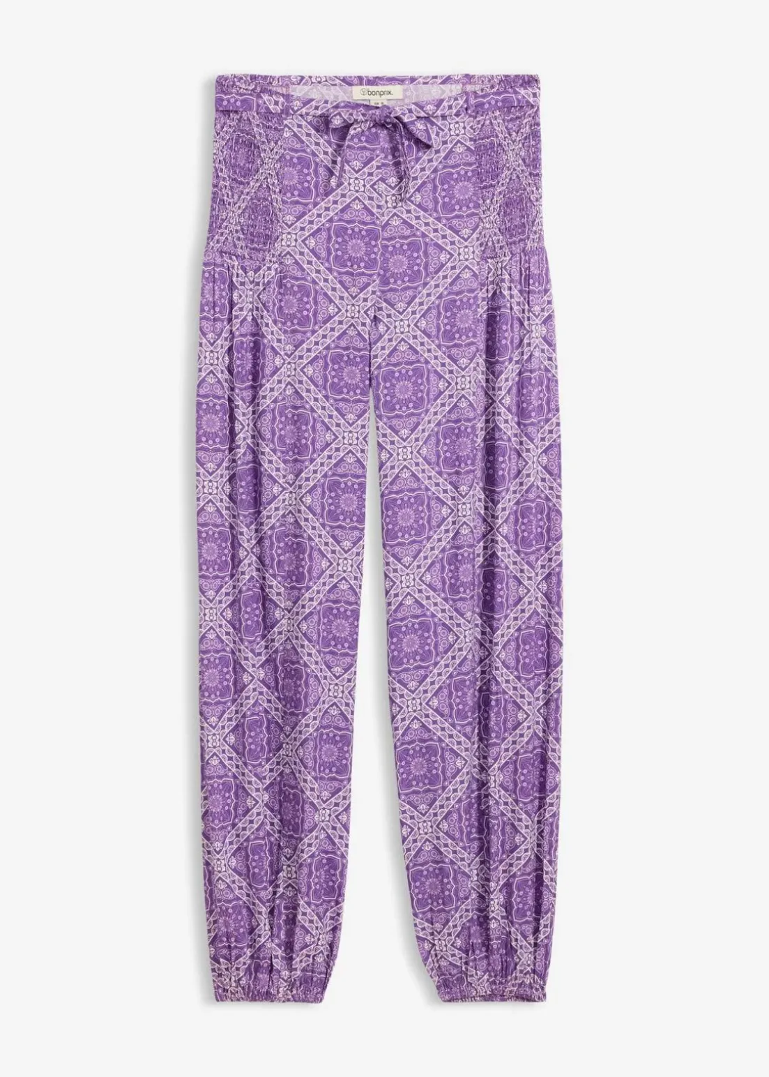 Ein echter Eyecatcher für alle, die es leger lieben – das ist diese stylishe Pumphose aus leichtem Material.Die locker geschnittene Hose ist allover gemustert und in der Taille sowie an den Beinenden mit elastischen Bündchen versehen. Die Raffungen in der Hüfte sorgen für einen lässigen Sitz. Am besten passt die angesagte Pumphose zu figurbetonten Tops und Shirts.