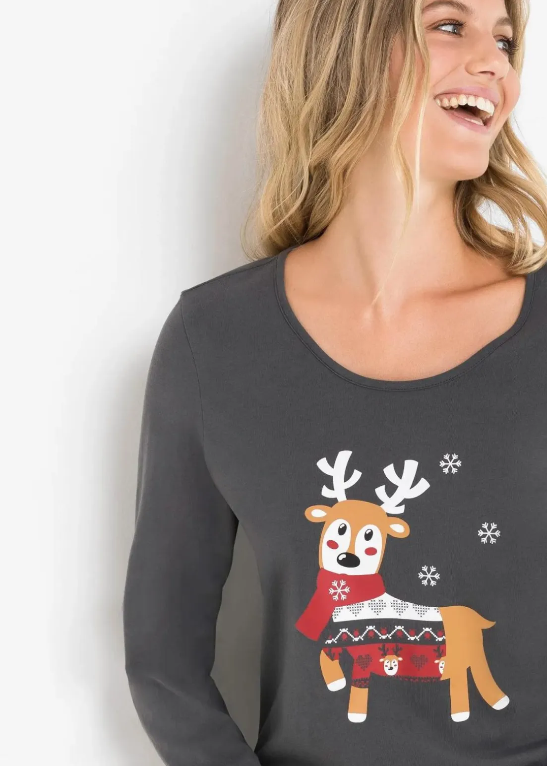 Der hohe Baumwollanteil dieses Schlafanzugs macht ihn besonders trageangenehm. Optisch punktet der Pyjama mit seinem niedlichen Rentier Motiv.