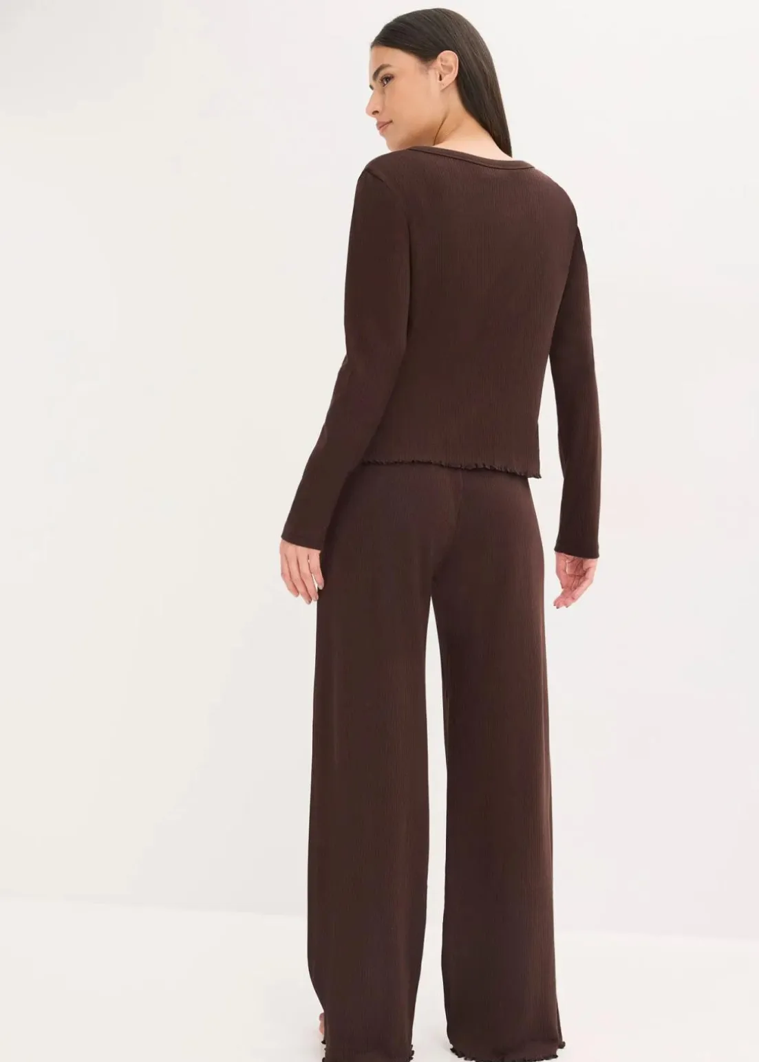 Moderner Pyjama aus Rippe mit Knopfleiste und weiter Hose