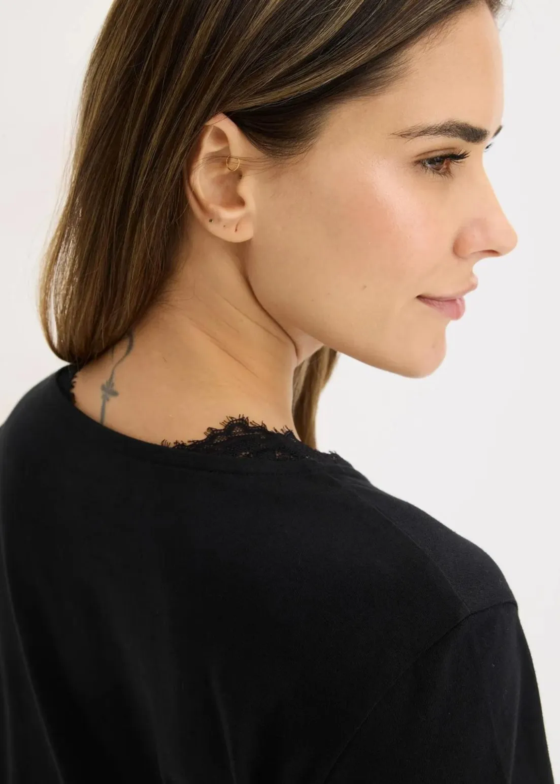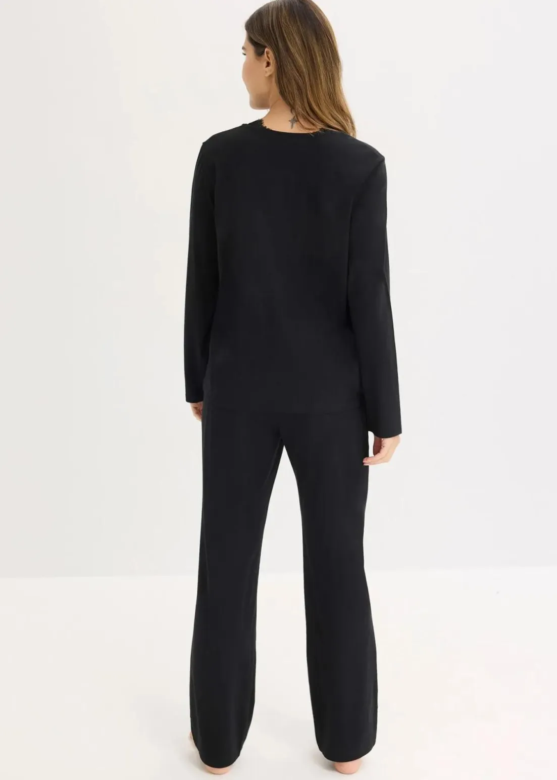 Weicher Pyjama mit Spitzenbesatz am Halsausschnitt und Knopfleiste sowie seitlichen Eingriffstaschen an der Hose