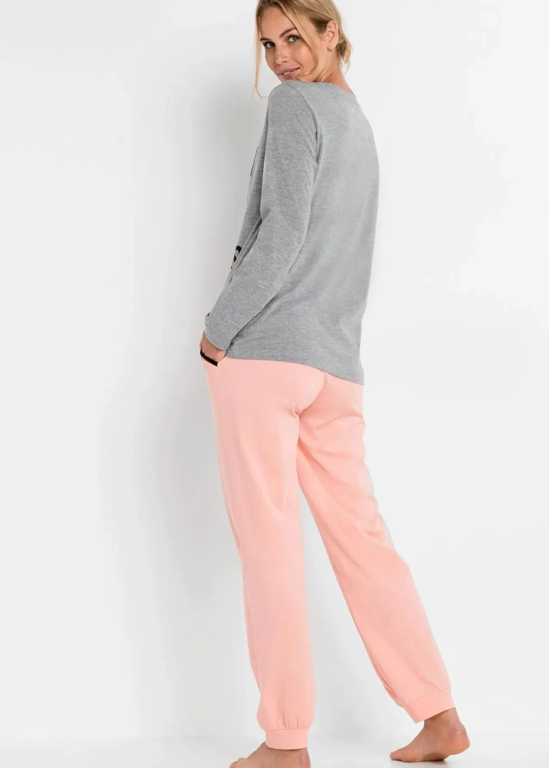 Dieser sportive Pyjama ist mit langen Ärmeln gearbeitet. Der hohe Baumwollanteil macht dieses Modell besonders trageangenehm.