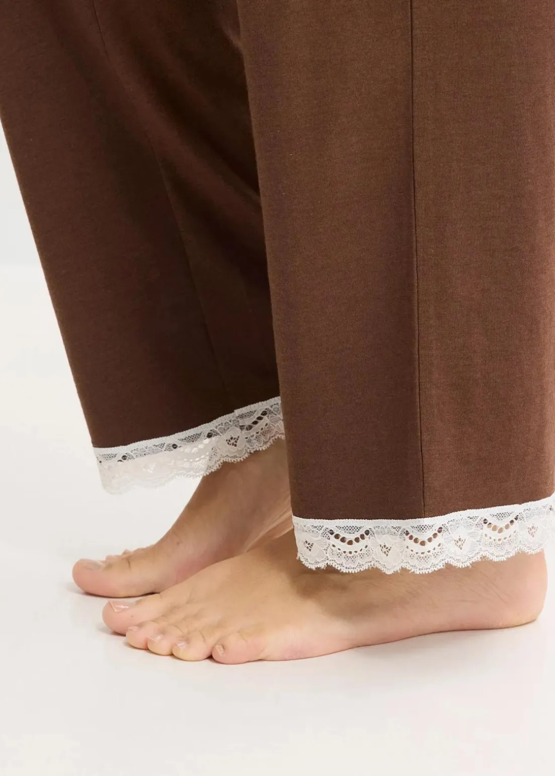 Femininer Pyjama mit besonders schönem Spitzenbesatz sowie Eingriffstaschen an der Hose