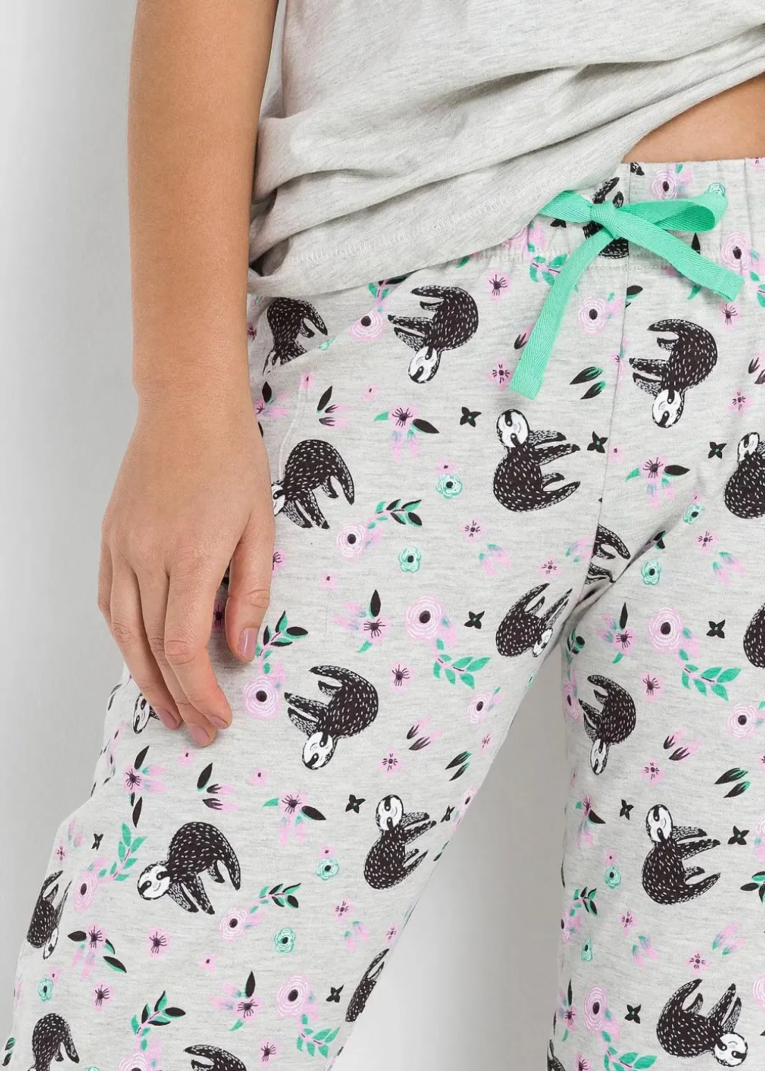 Das Shirt des zweiteiligen Sets zeigt sich mit kurzen, umgeschlagenen Ärmeln und einem bequemen Rundhalsausschnitt. Die Hose ist durch ein regulierbares Bindeband am Bündchen weitenverstellbar. Die elastischen Bündchen am Hosensaum sorgen für einen modernen Look.