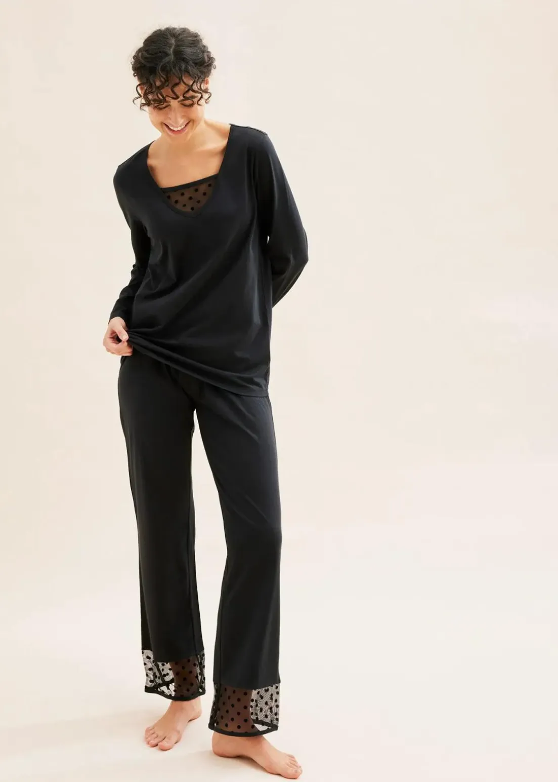 Gemütlicher Schlafanzug aus Baumwolle mit Mesh
