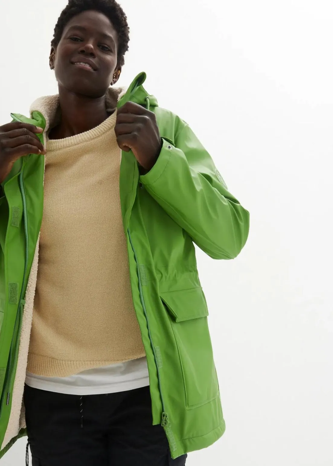 gefütterte Regenjacke aus wasserdichtem Material, weit geschnitten