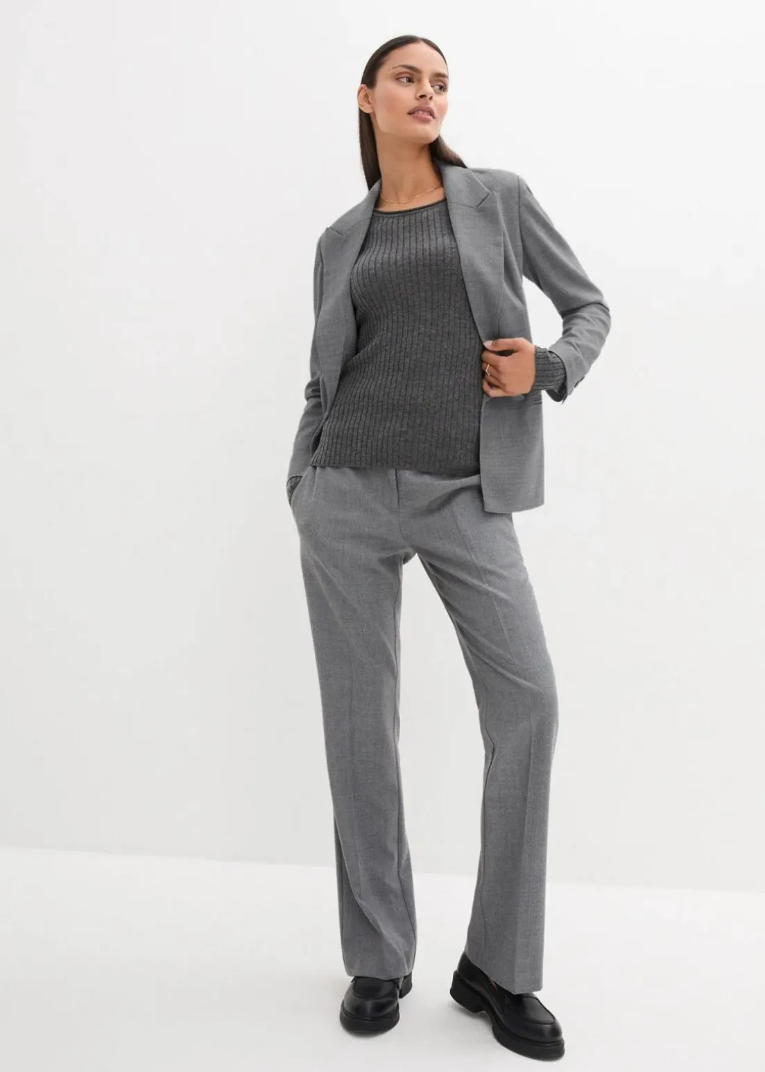 gerippter Rundhalspullover aus reiner Merinowolle in Premium Qualität