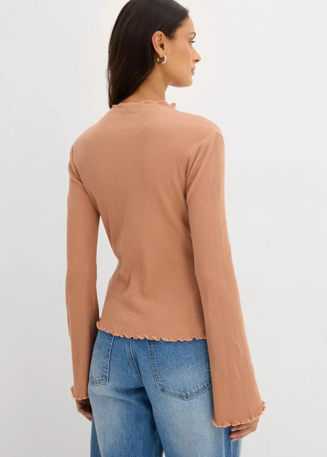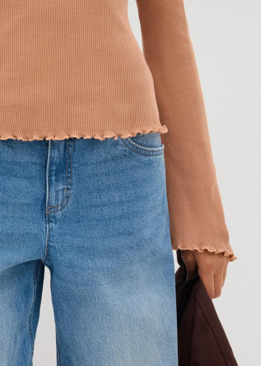 Feines Rippshirt aus reiner Baumwolle mit Trompetenärmeln