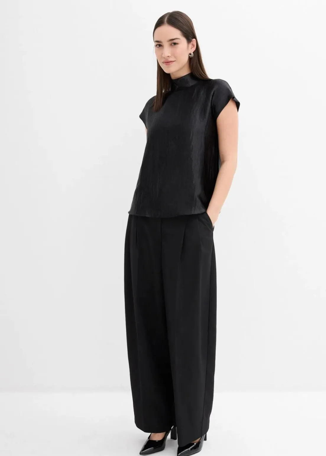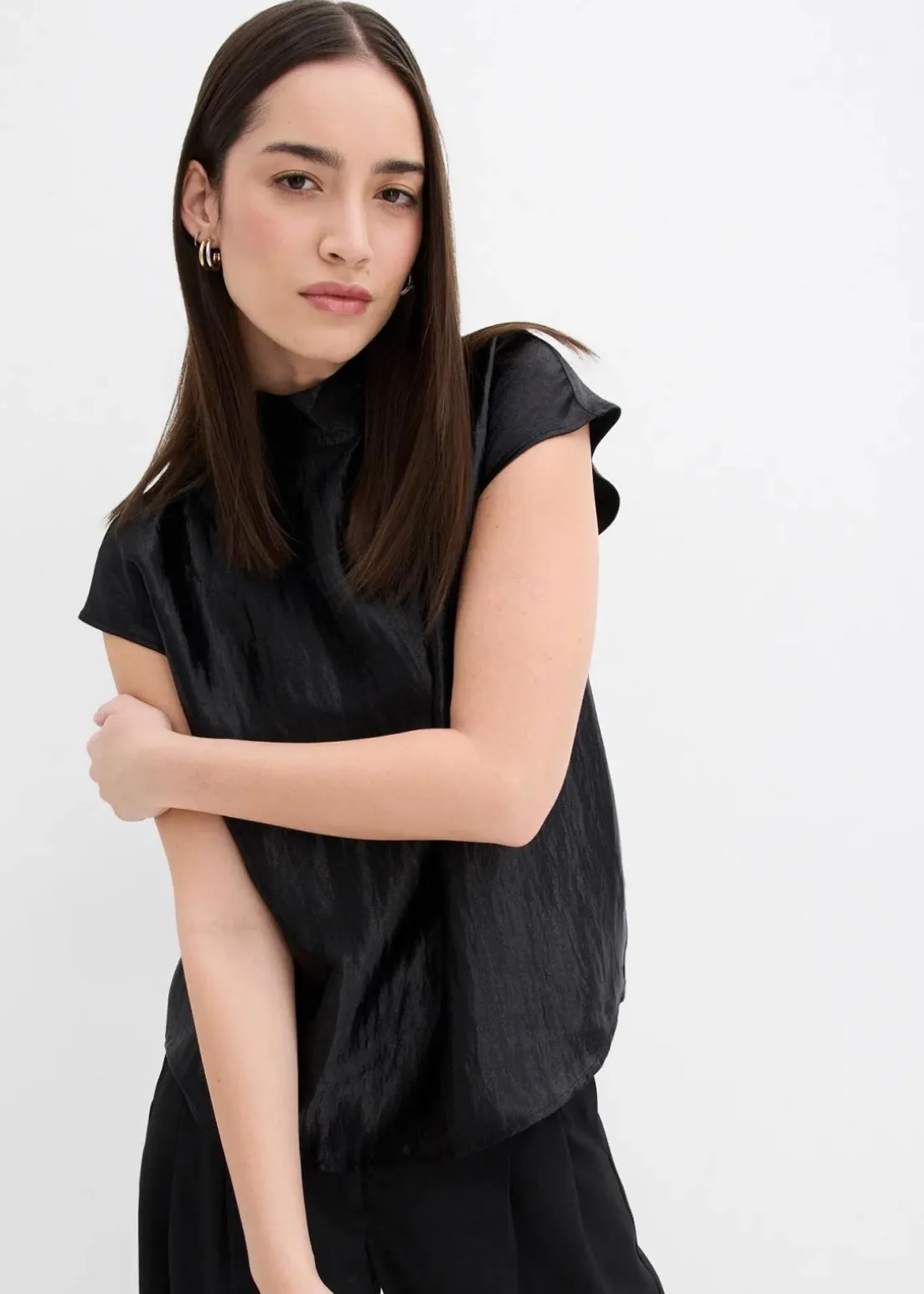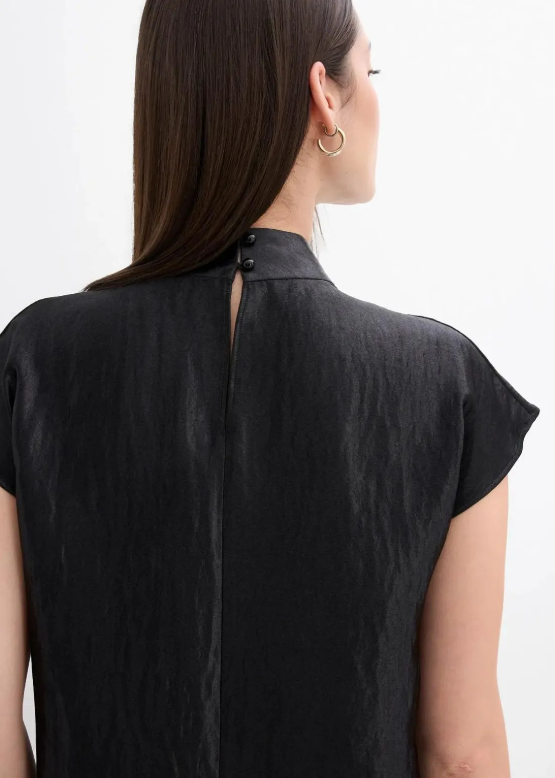Ärmellose Bluse aus fließendem Stoff mit Knopfverschluss hinten