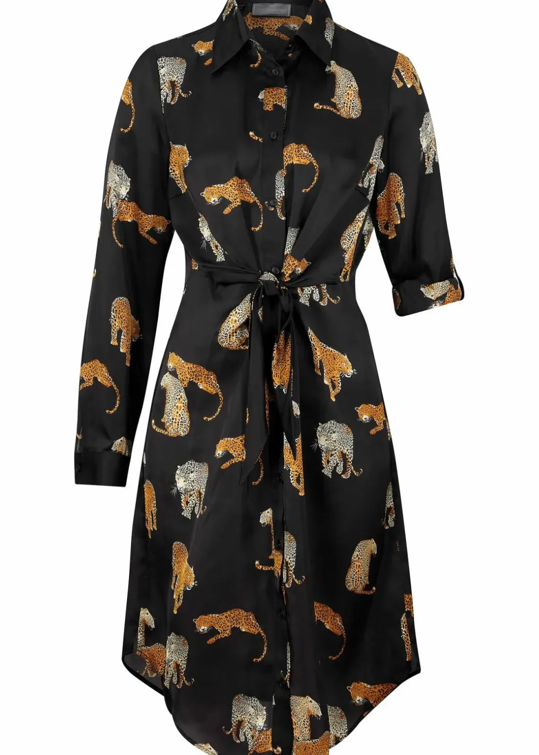 Schönes Satin Hemdblusenkleid mit modernen Leo-Druck