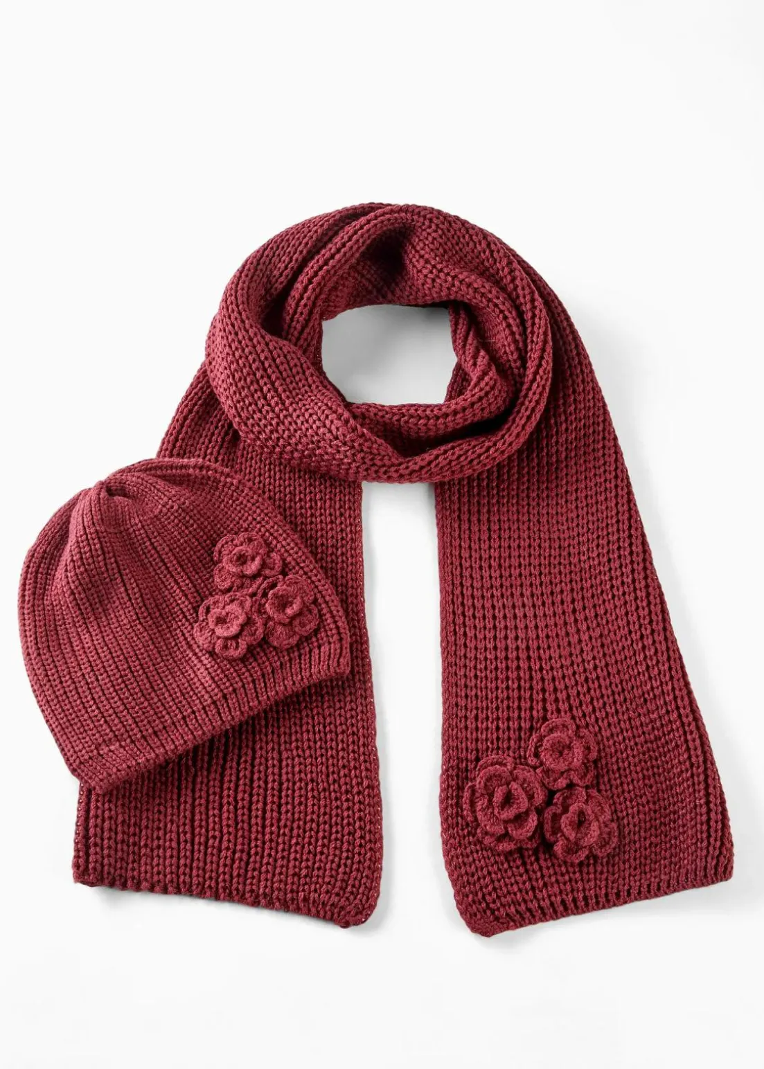 Süßes Strickset (2-tlg. Set) mit Blumen-Applikationen