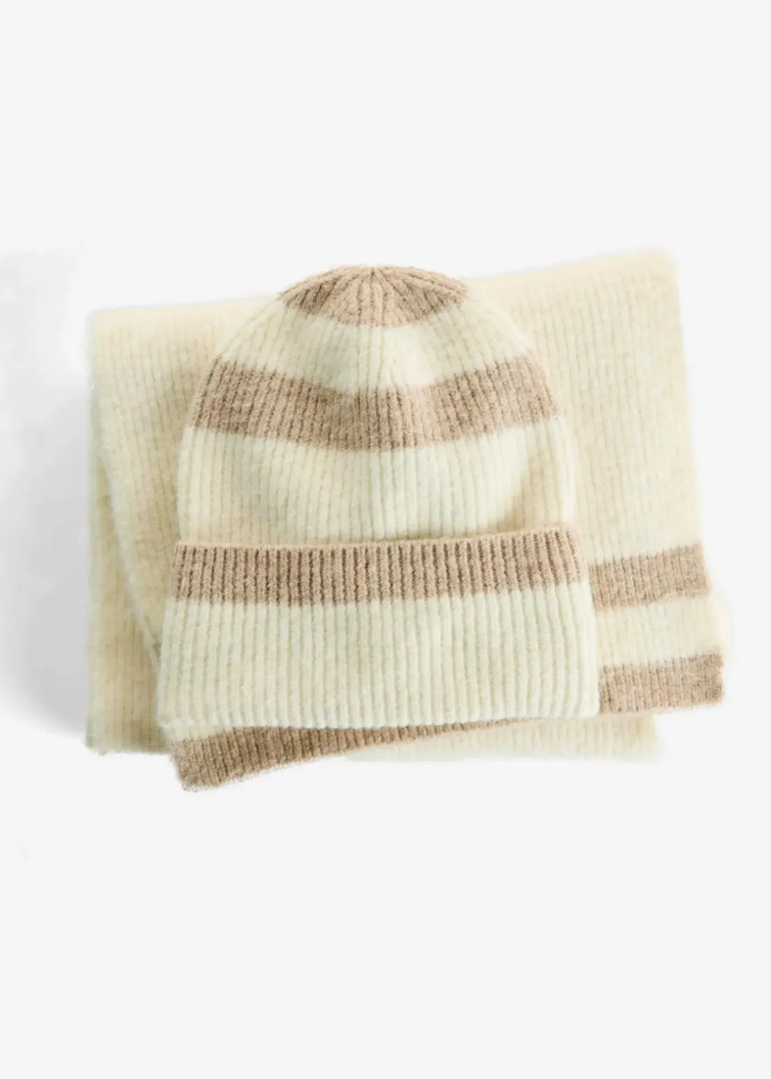 Hübsches Set aus Schal und Mütze mit Streifenmuster
