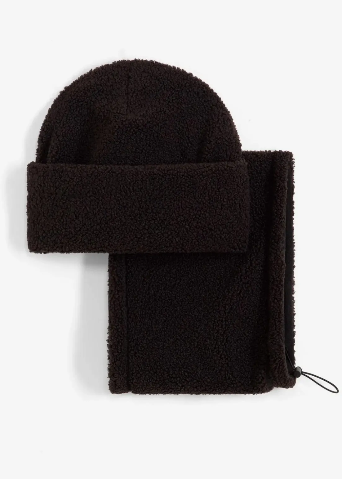 Kuschelweiches Set aus Schal und Mütze im Teddy Look