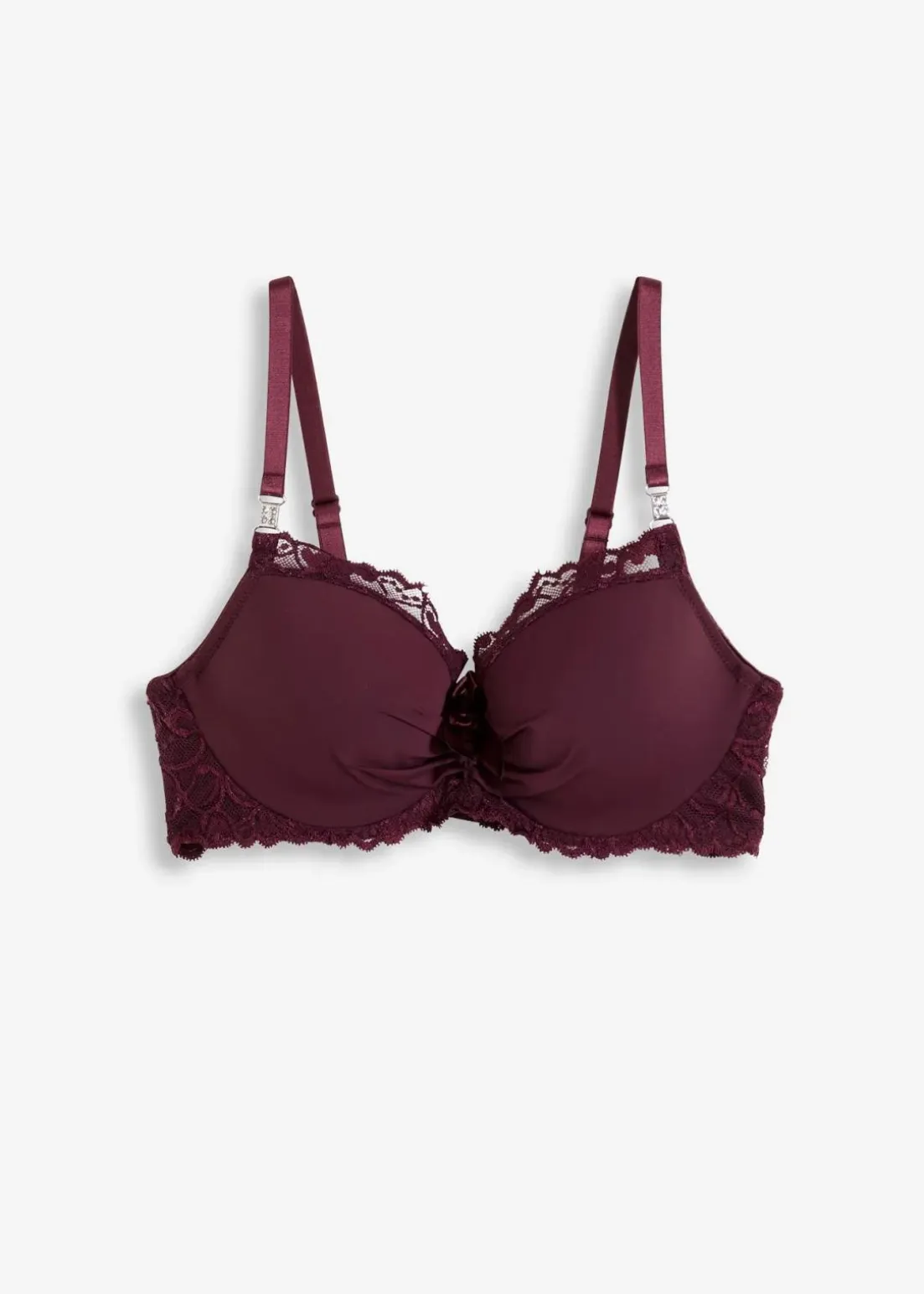 Der Schalen BH von BODYFLIRT ist ein absoluter Blickfang. Die Cupränder und Seiten des BHs ziert feine Spitze. In der Mitte ist der BH zudem mit einem raffiniert drapierten Faltenwurf und einer Schleife aus Satin geschmückt. Zusätzlich sorgen Glitzersteinapplikationen an den Trägern für das gewisse Etwas. Die Cups des BHs sind vorgeformt und gepolstert. Darüber hinaus bieten angenehme Formbügel optimalen Halt. Maite empfiehlt: „Dieses Ensemble ist ganz im Trend. Für die Frau mit dem Hang zur Romantik, die gerne ihre kokette Seite ausleben möchte. Damit bringt sie ihren ganzen Charme zur Geltung und setzt ihn ins richtige Licht.“