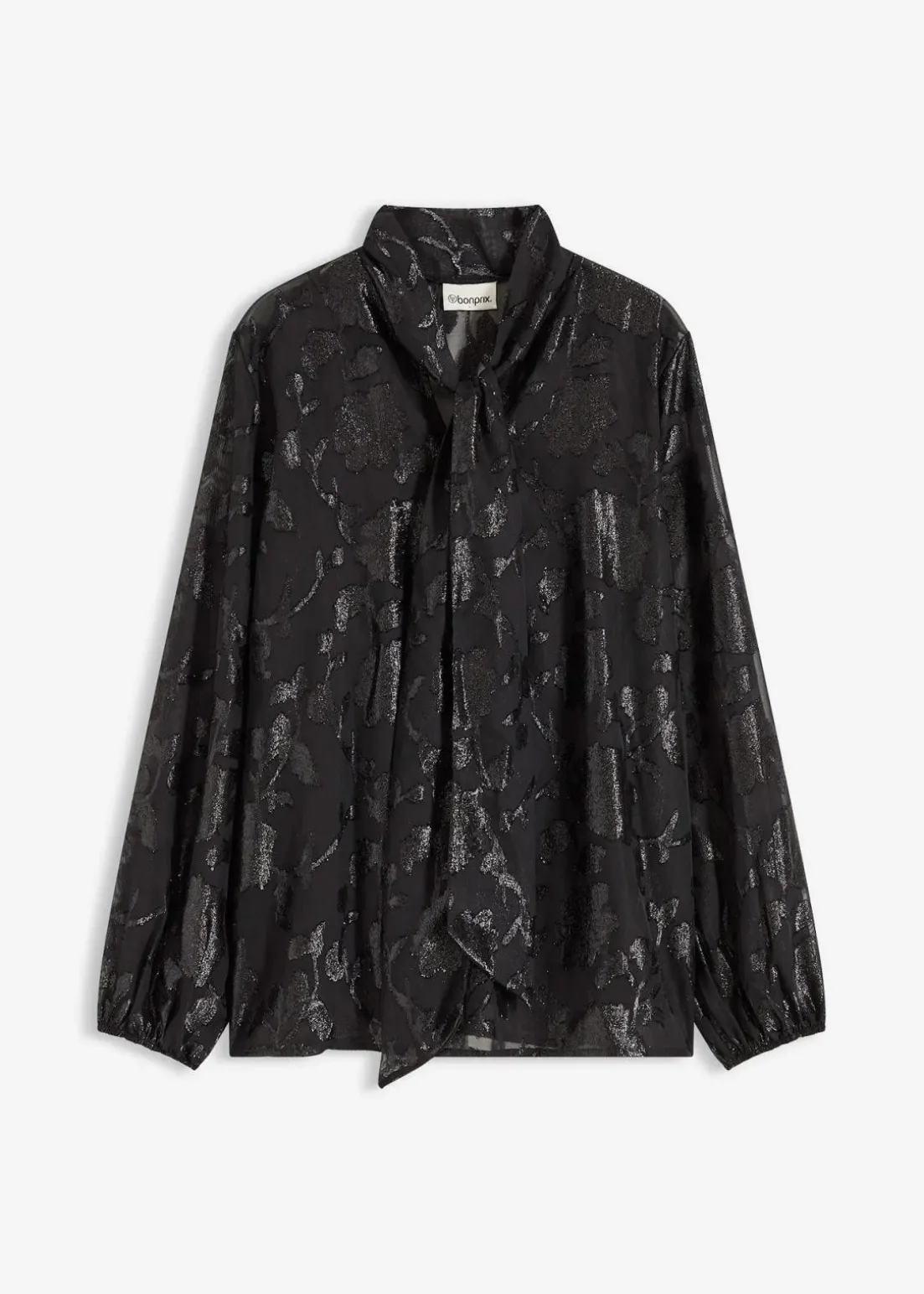 Modern und feminin: Bluse floraler Stickerei mit Glanz und Binde-Detail am Kragen